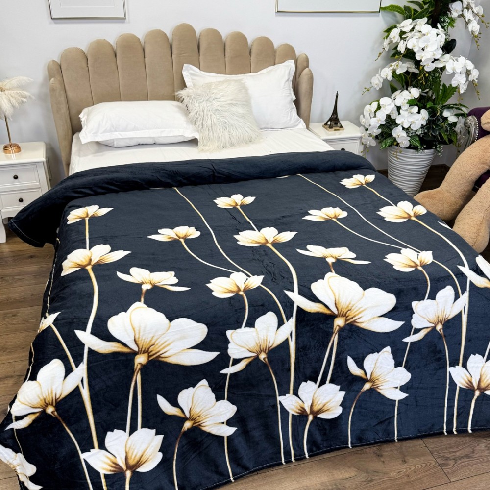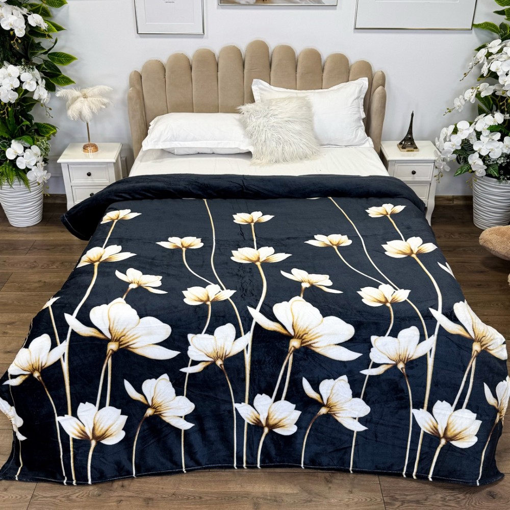 Patura CoCoLiNo, 200x230cm, Negru, flori, cod produs: YJP229