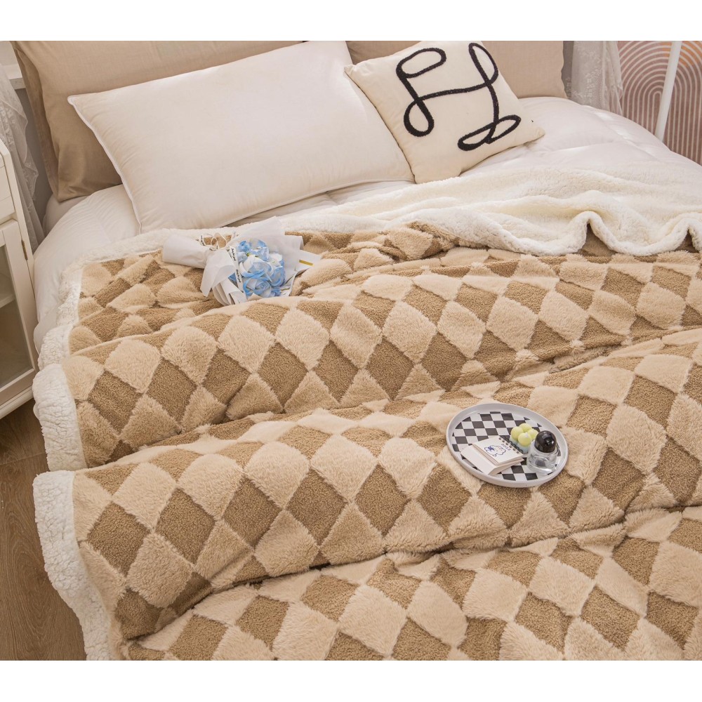 Patura CoCoLiNo cu Blanita de Iepure si Catifea Teddy, 200x230cm, cu blanita pe spate, Jojo Home, Bej, cod produs: JOB507