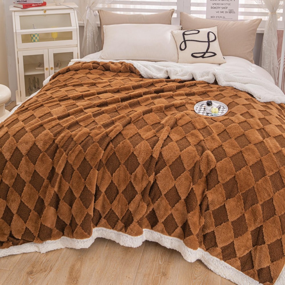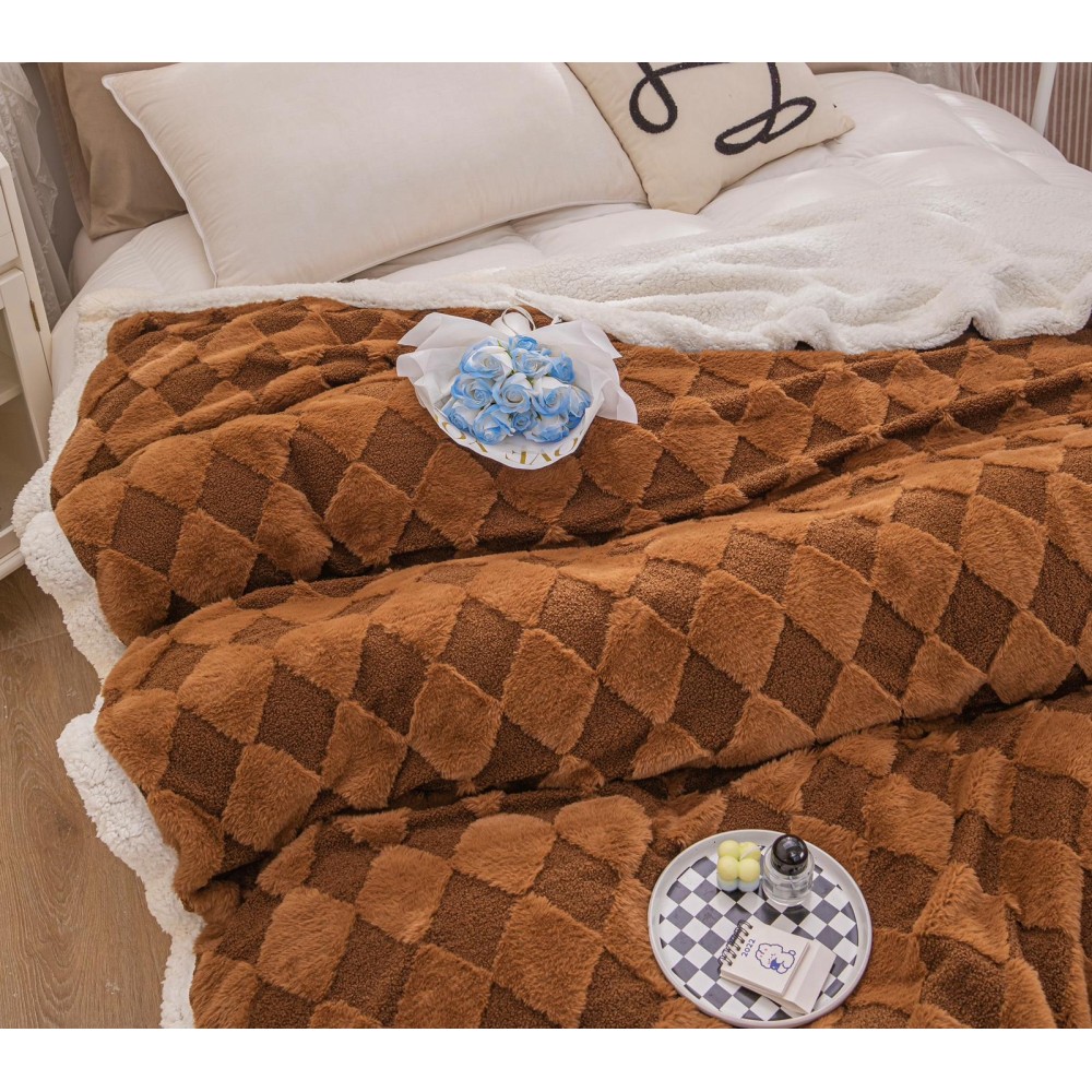 Patura CoCoLiNo cu Blanita de Iepure si Catifea Teddy, 200x230cm, cu blanita pe spate, Jojo Home, Maro, cod produs: JOB504