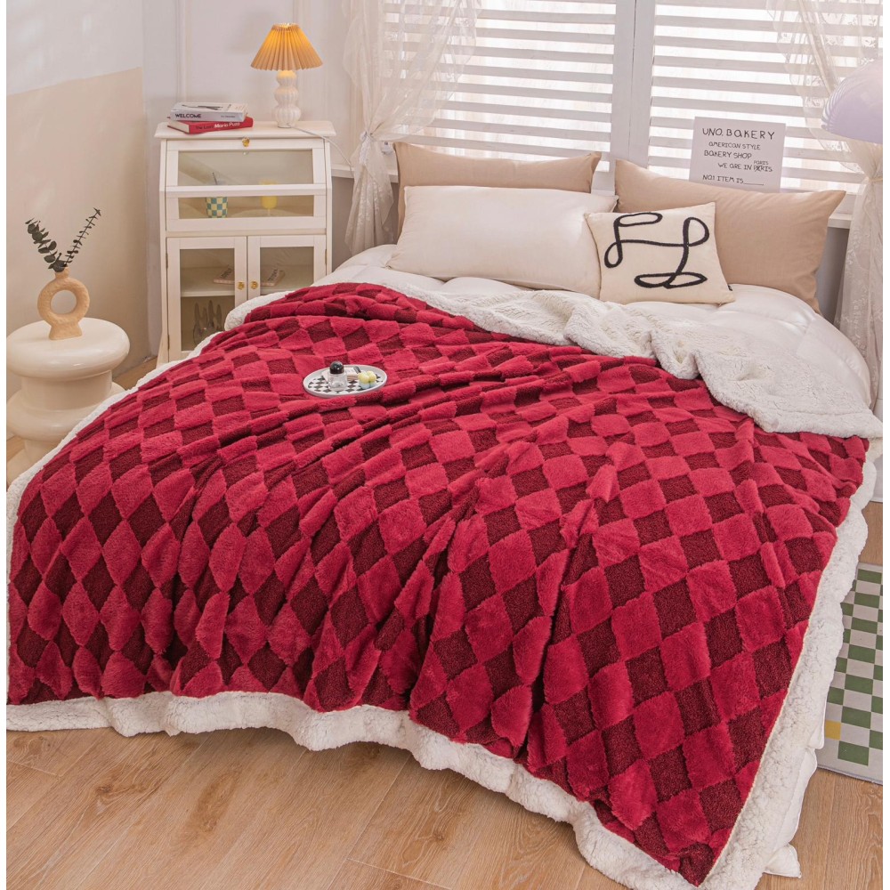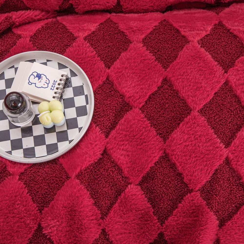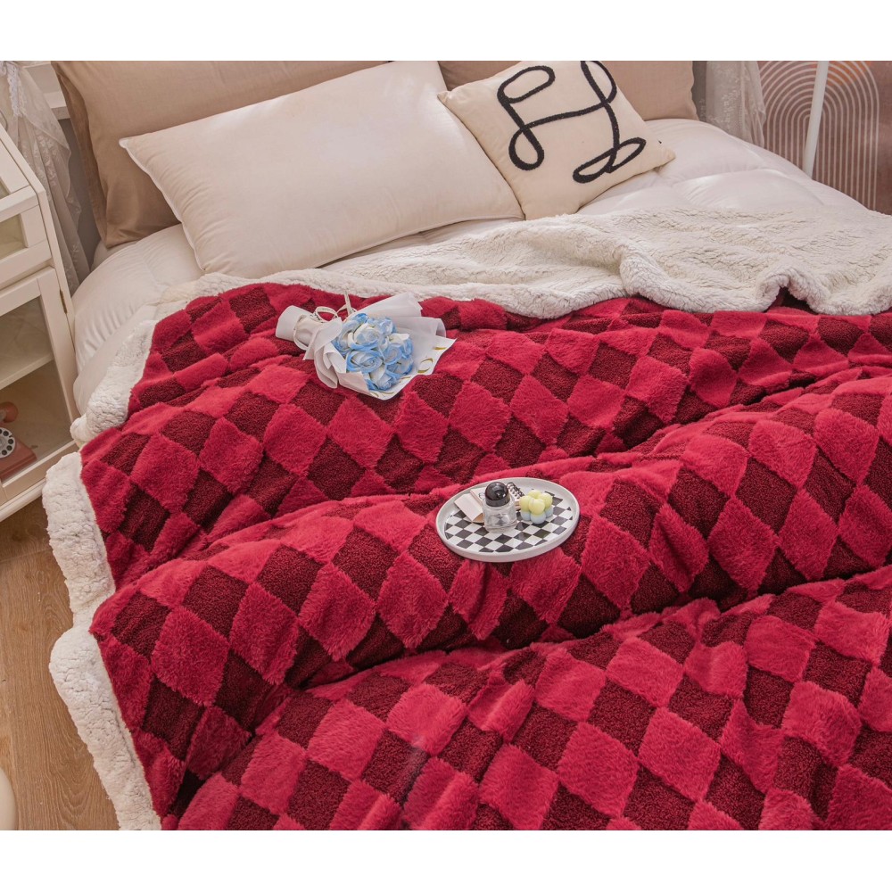 Patura CoCoLiNo cu Blanita de Iepure si Catifea Teddy, 200x230cm, cu blanita pe spate, Jojo Home, Rosu, cod produs: JOB503