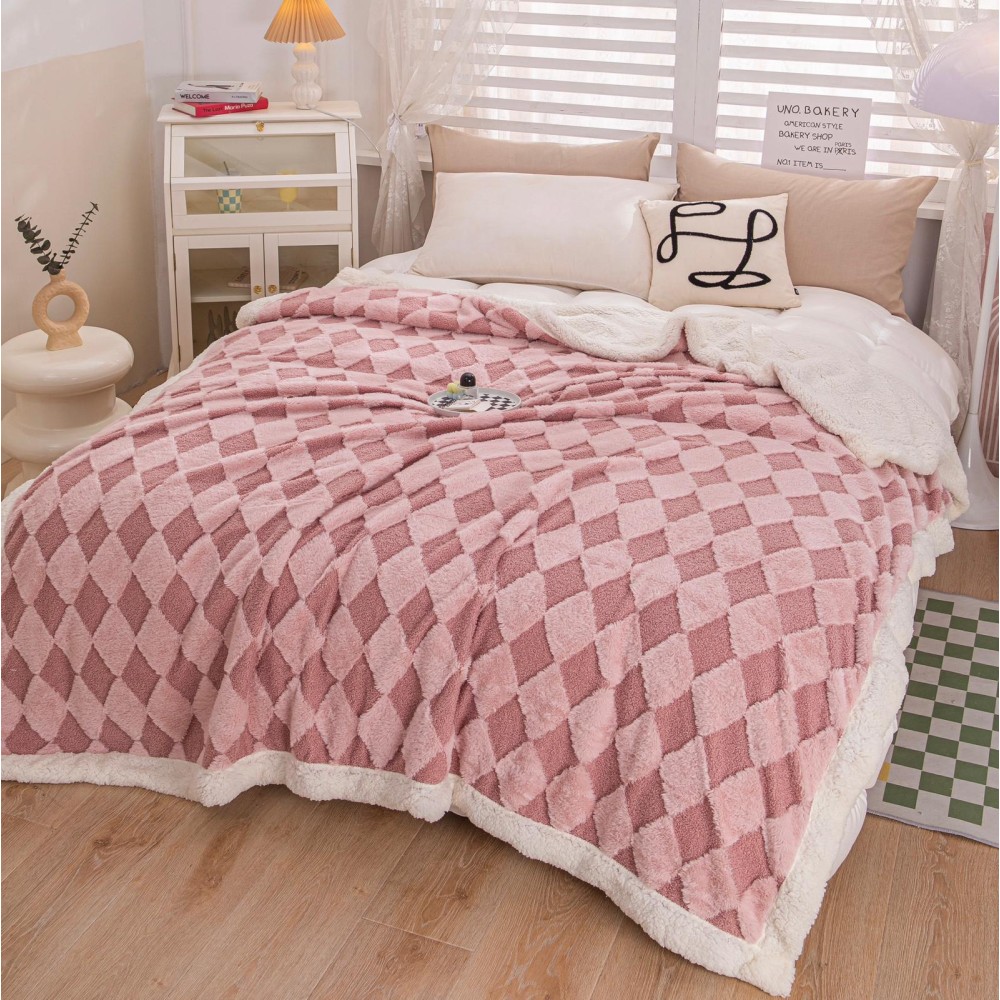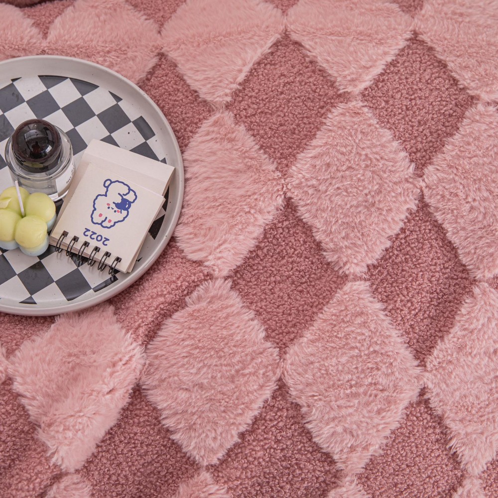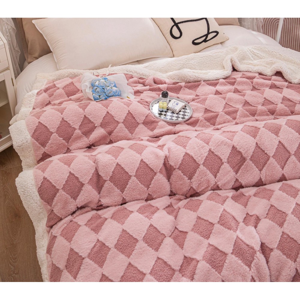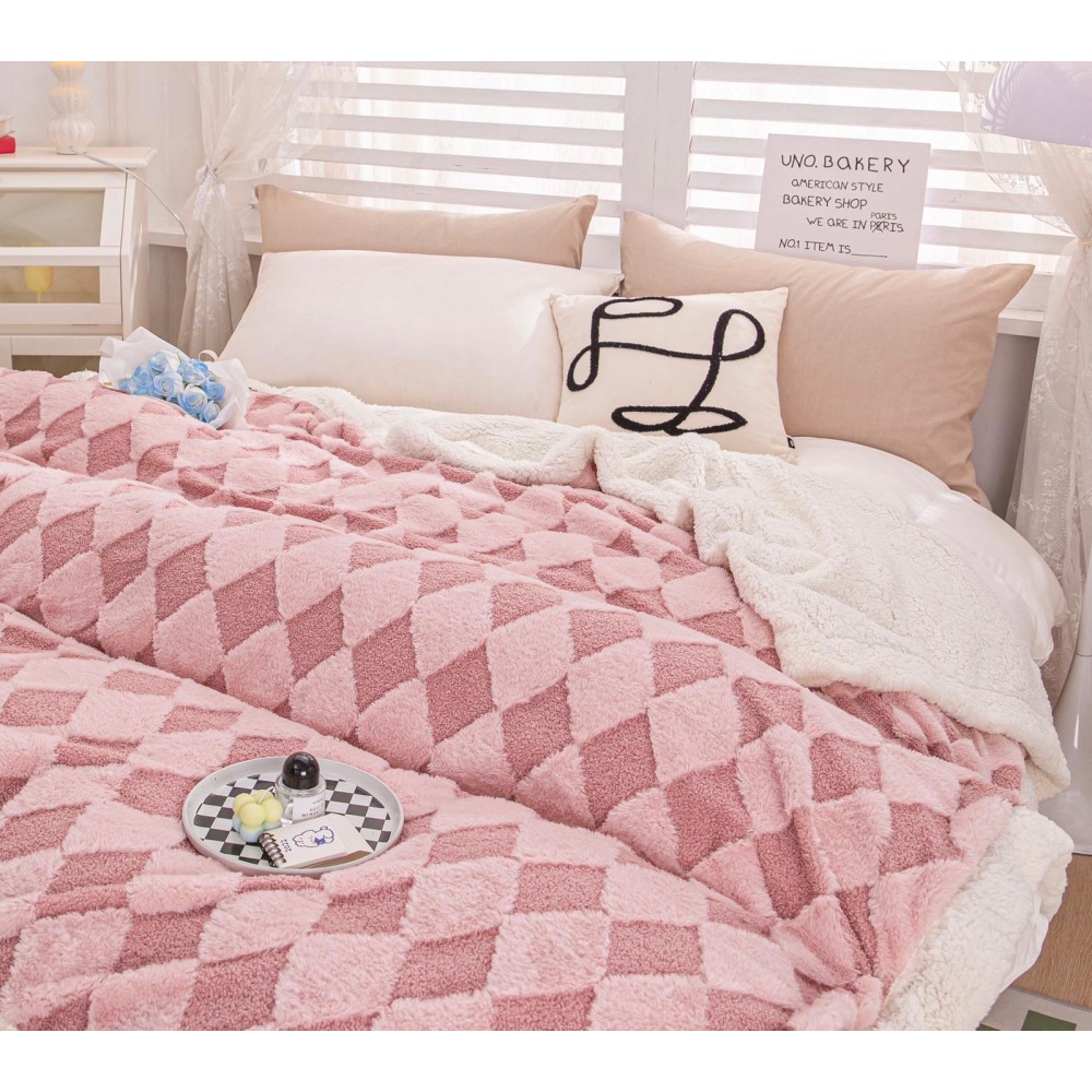 Patura CoCoLiNo cu Blanita de Iepure si Catifea Teddy, 200x230cm, cu blanita pe spate, Jojo Home, Roz, cod produs: JOB505