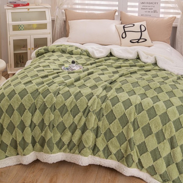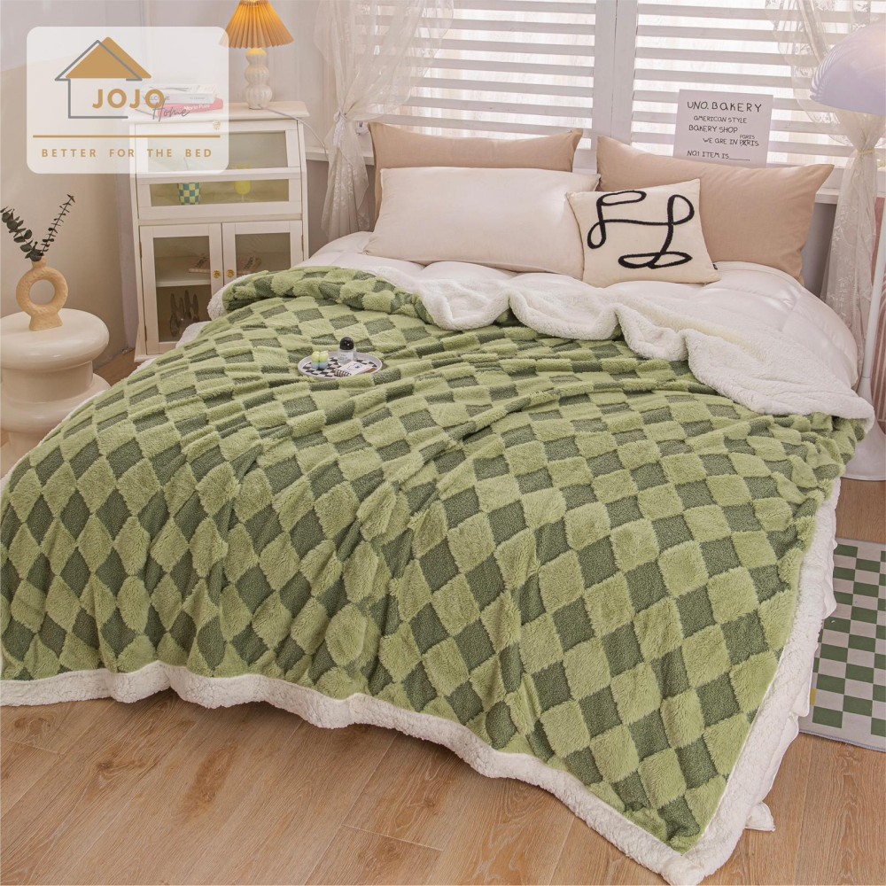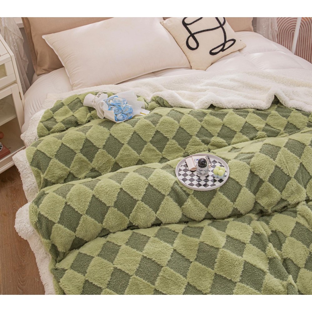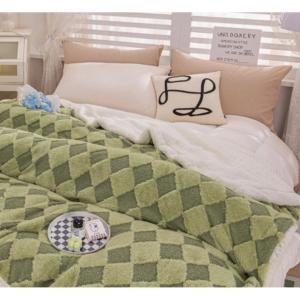 Patura CoCoLiNo cu Blanita de Iepure si Catifea Teddy, 200x230cm, cu blanita pe spate, Jojo Home, Verde, cod produs: JOB500