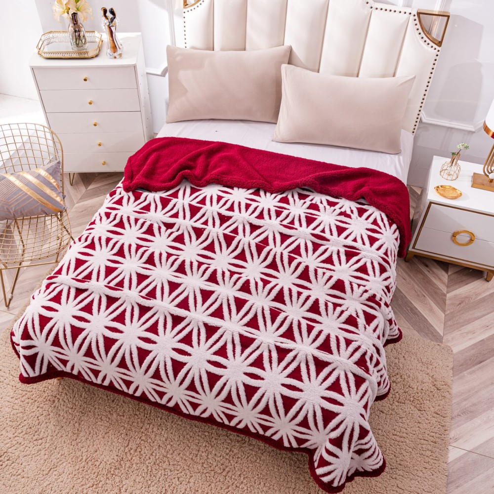 Patura CoCoLiNo cu blanita, tip Sherpa, model floral, Rosu - Alb, cod produs: PCP202