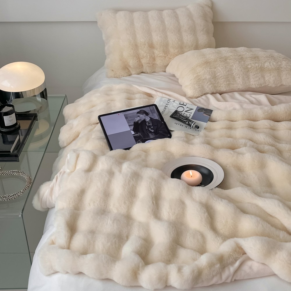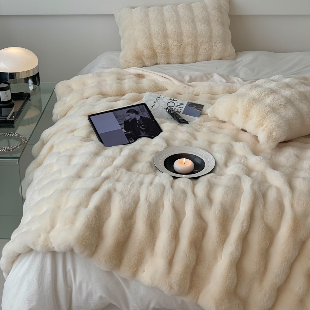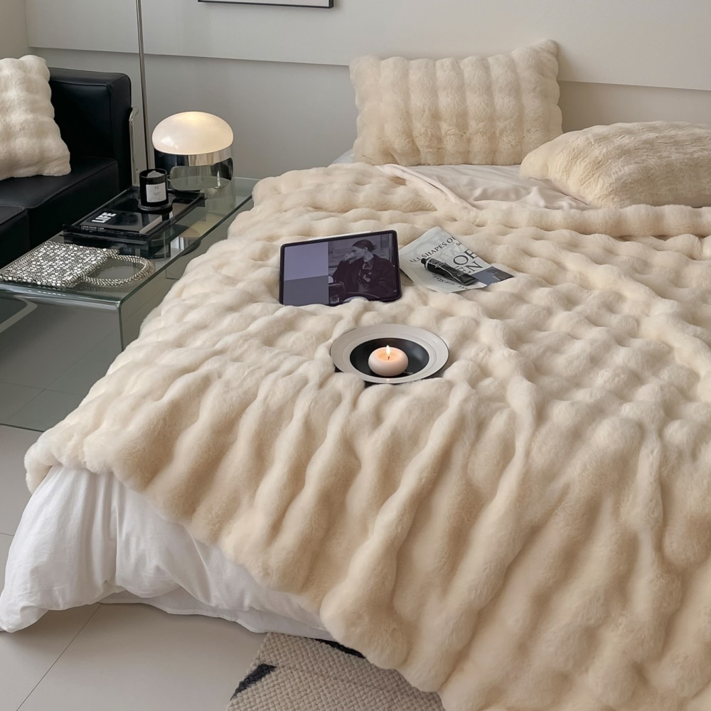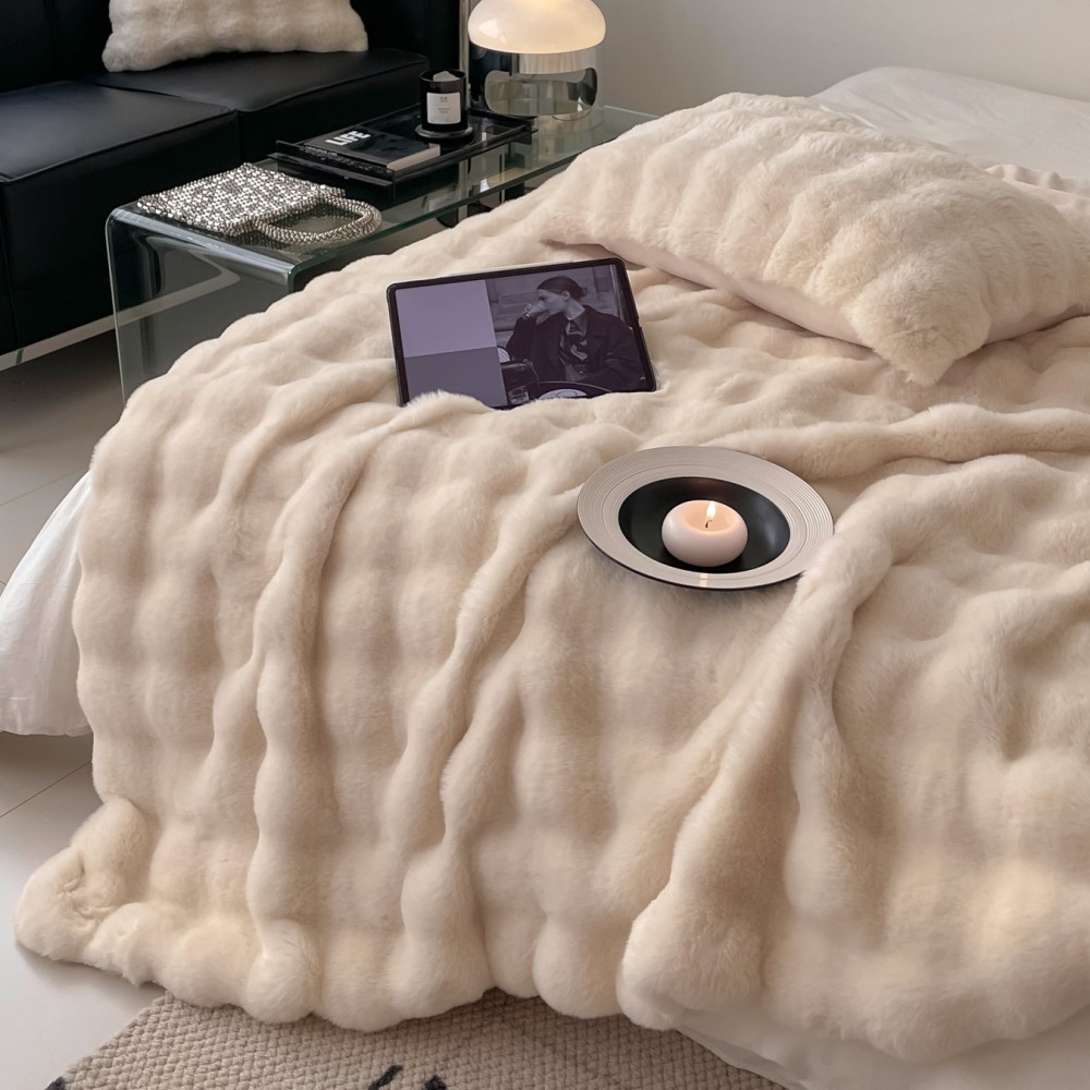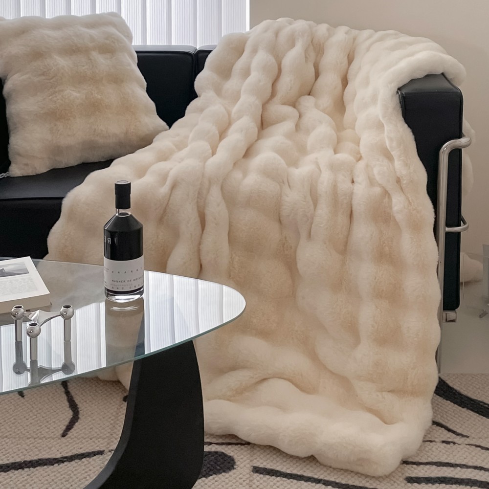 Vă prezentăm noua noastră colectie exclusivă: pătura premium pentru pat dublu realizată din blăniță artificială de iepure. Acest produs reprezintă combinația perfectă între eleganță și confort, garantând clipe de răsfăț în zilele reci de iarnă.