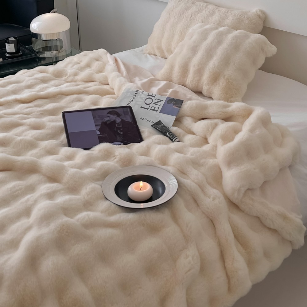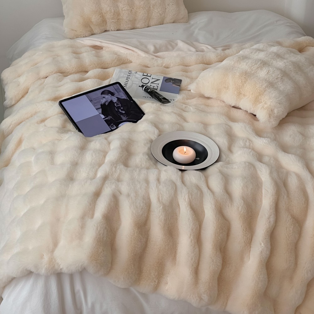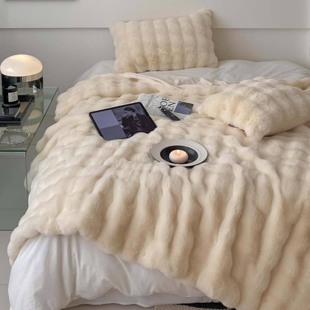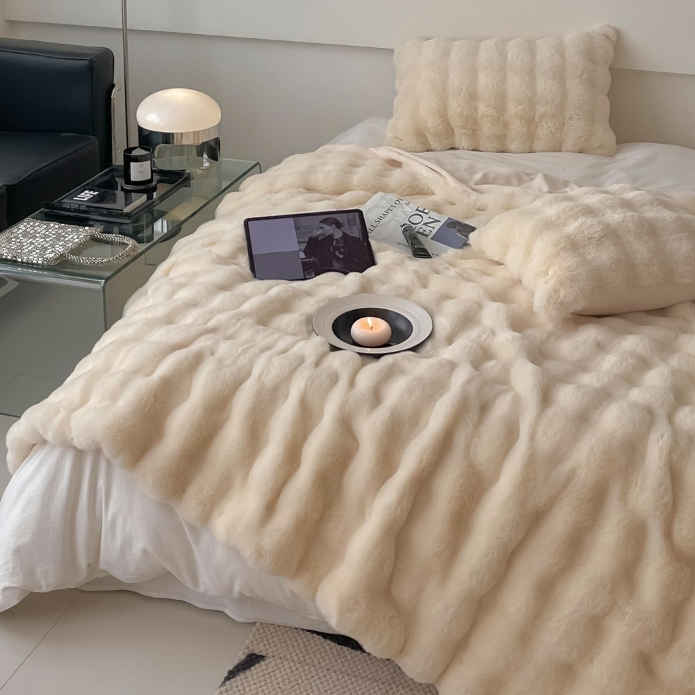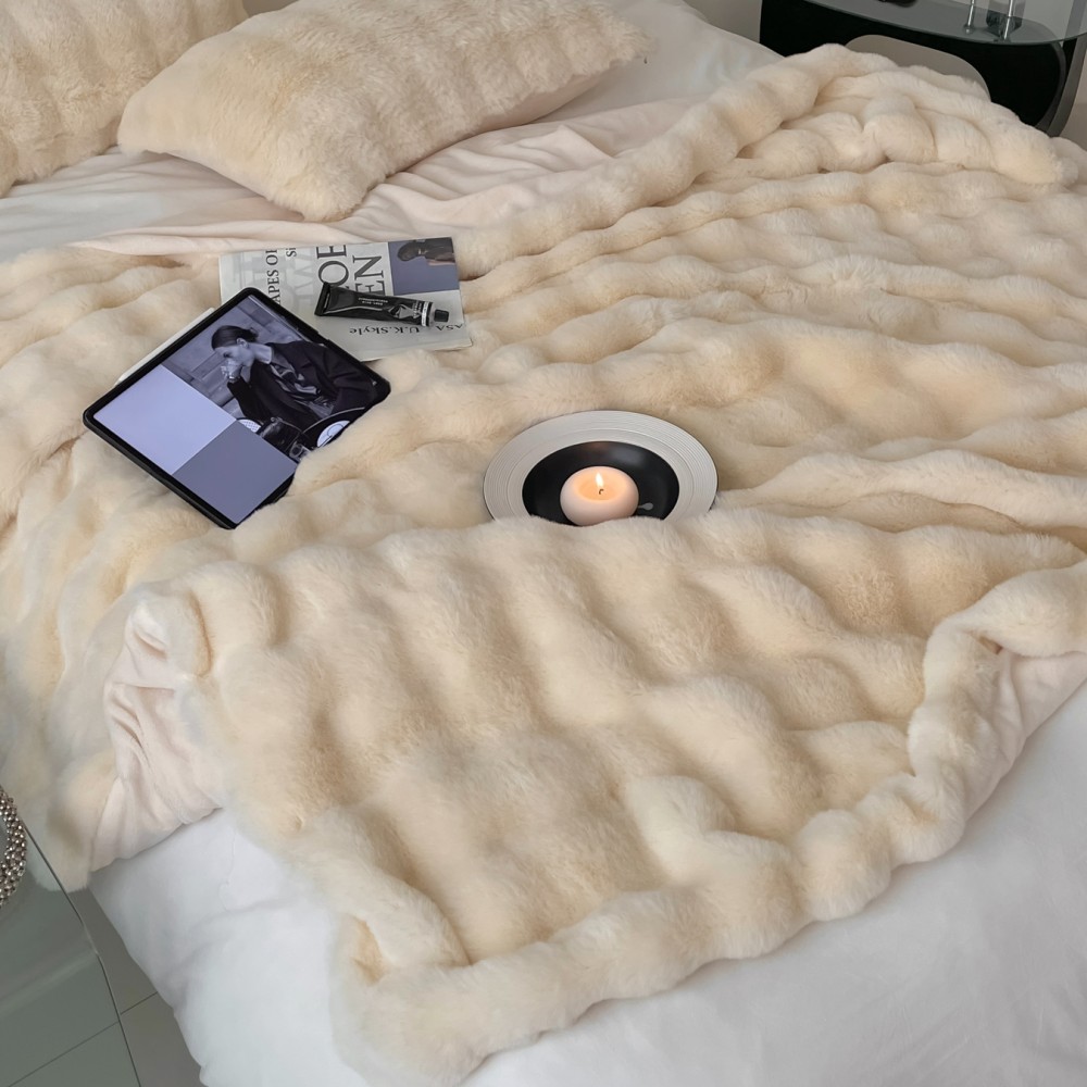 Vă prezentăm noua noastră colectie exclusivă: pătura premium pentru pat dublu realizată din blăniță artificială de iepure. Acest produs reprezintă combinația perfectă între eleganță și confort, garantând clipe de răsfăț în zilele reci de iarnă.