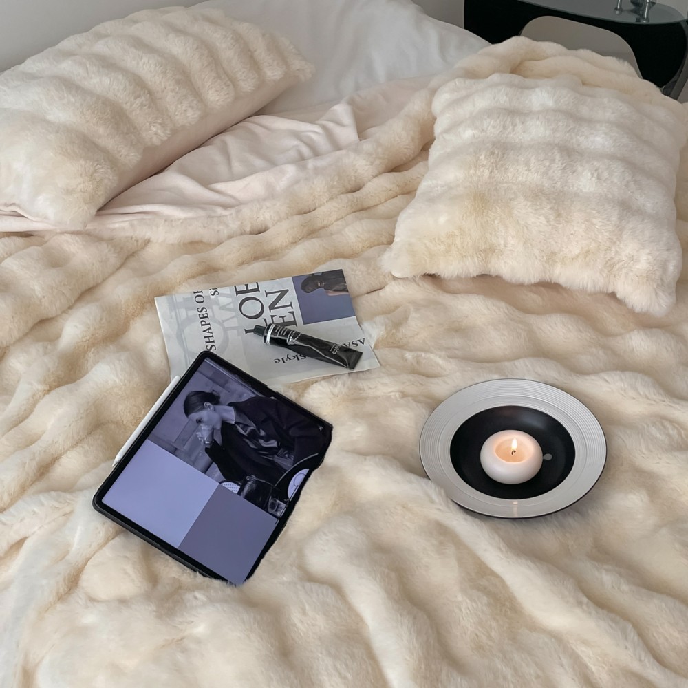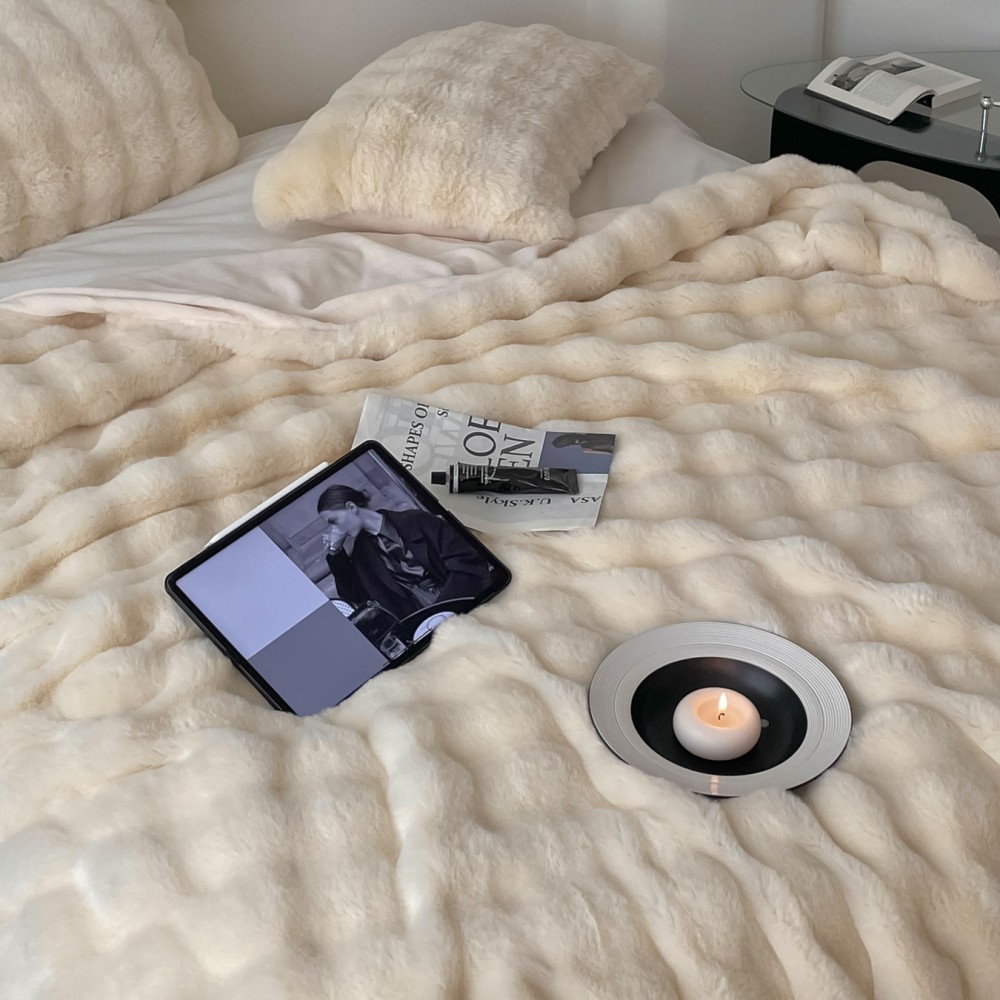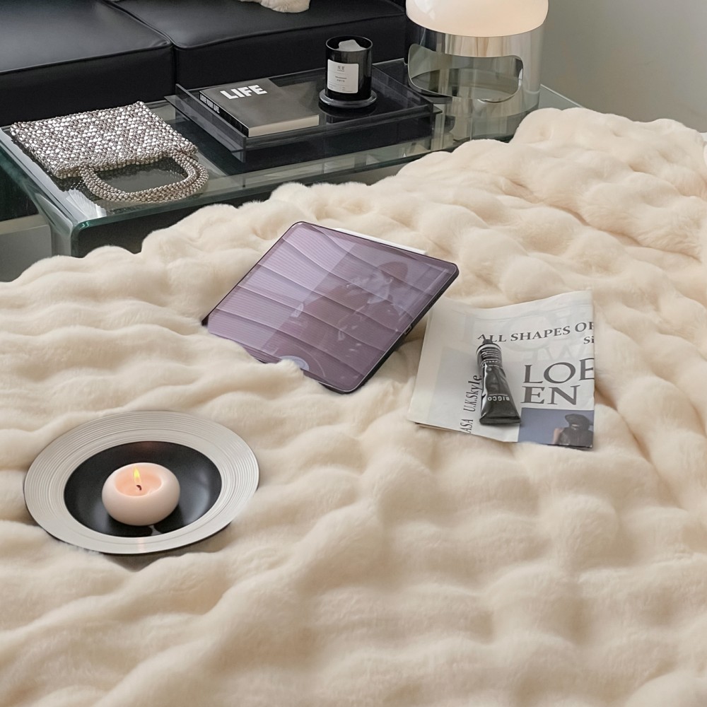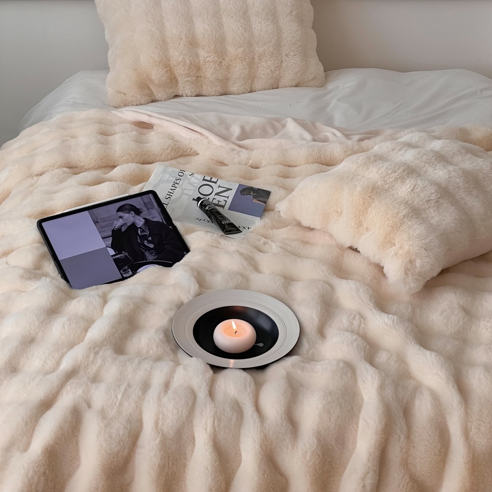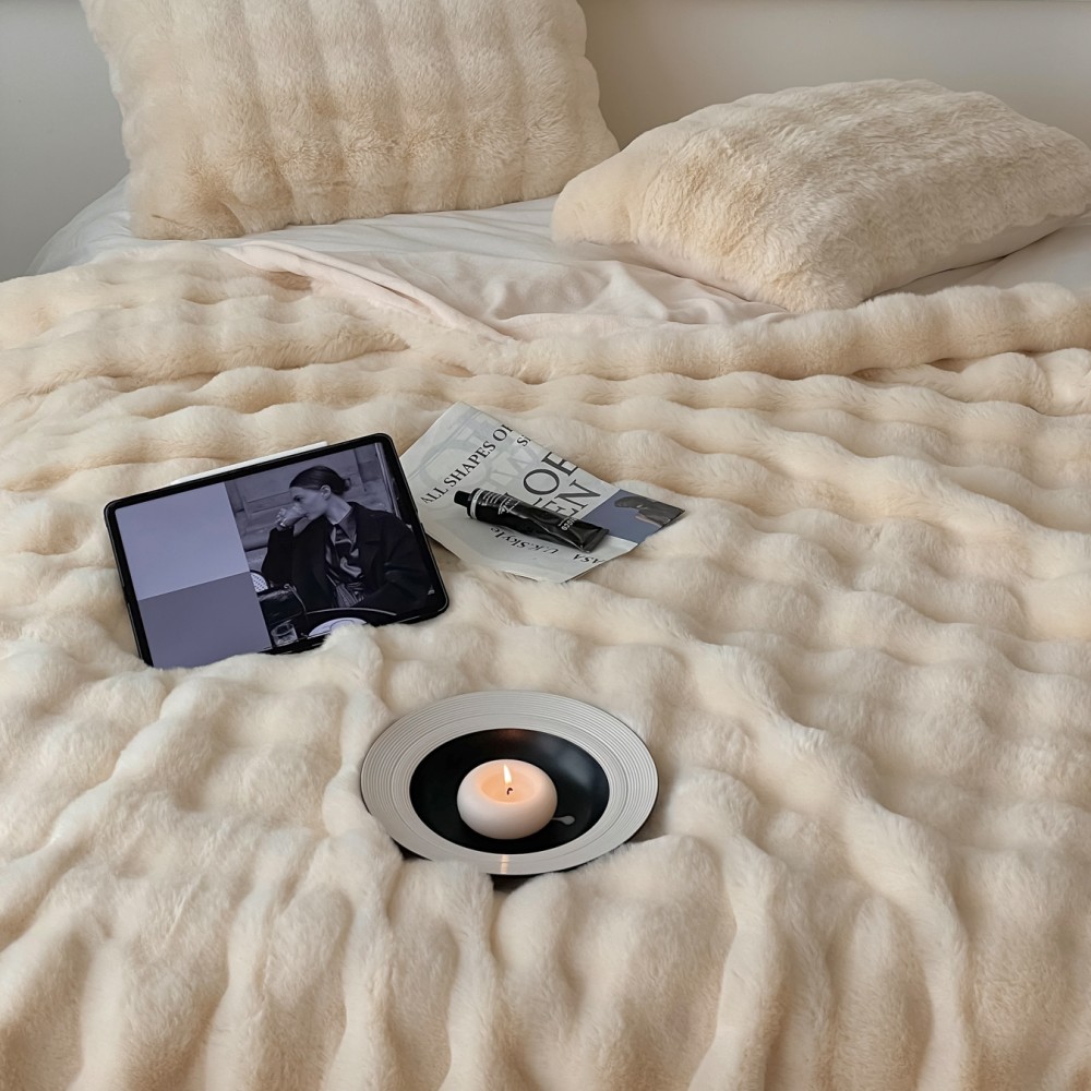 Moale ca un norisor: Când îți vei înfășura corpul în această pătură, vei simți imediat textura moale și delicată, comparabilă cu blana naturală de iepure. Însă spre deosebire de blana naturală, aceasta nu necesită îngrijire specială și este 100% cruelty-free.