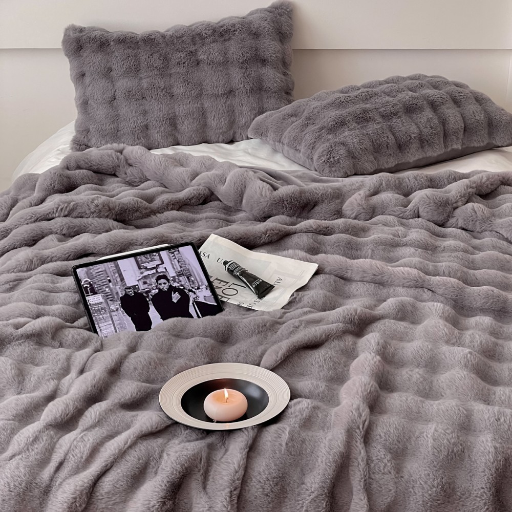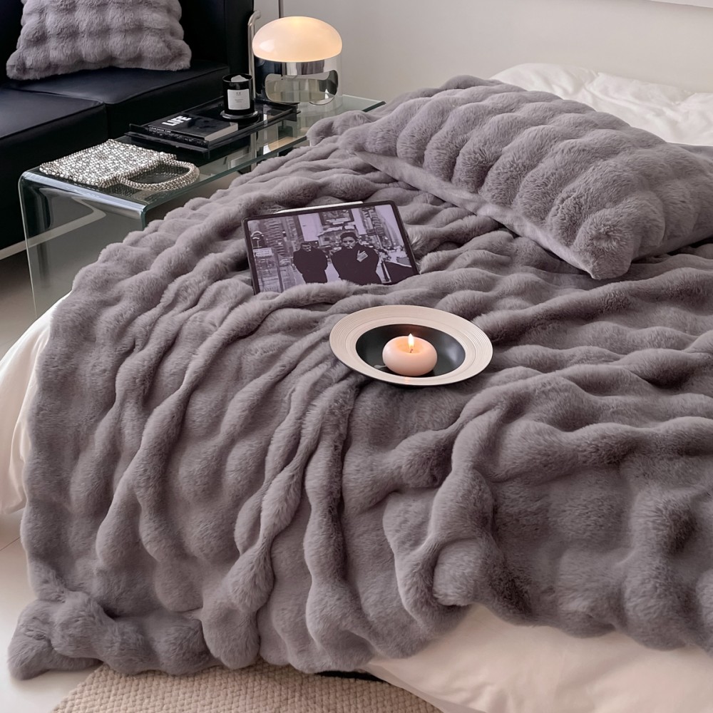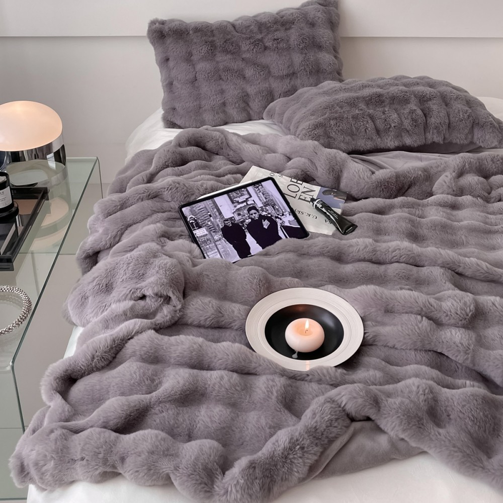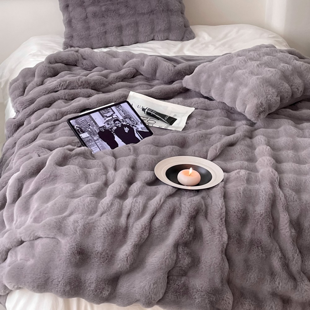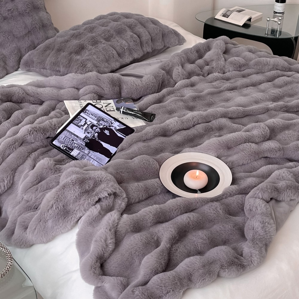 Vă prezentăm noua noastră colectie exclusivă: pătura premium pentru pat dublu realizată din blăniță artificială de iepure. Acest produs reprezintă combinația perfectă între eleganță și confort, garantând clipe de răsfăț în zilele reci de iarnă.