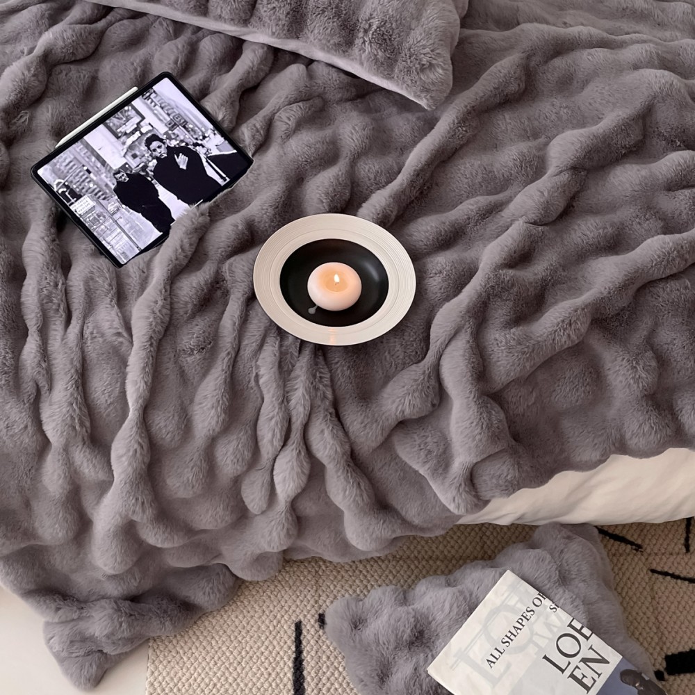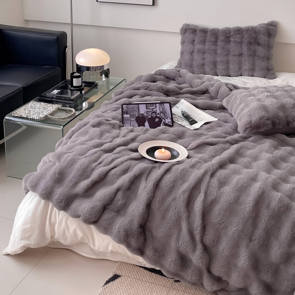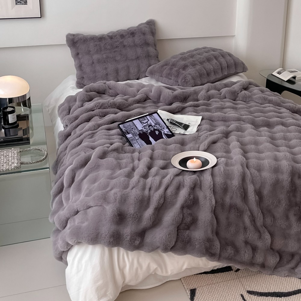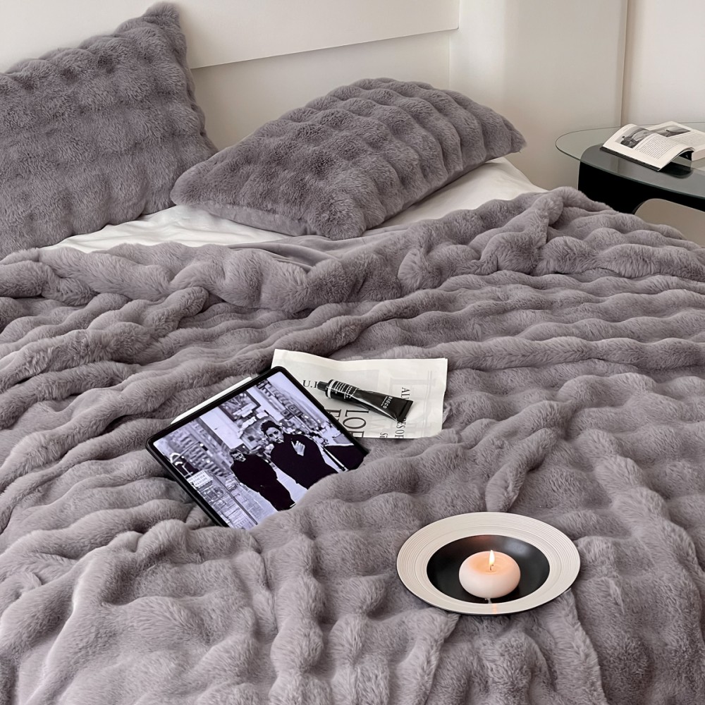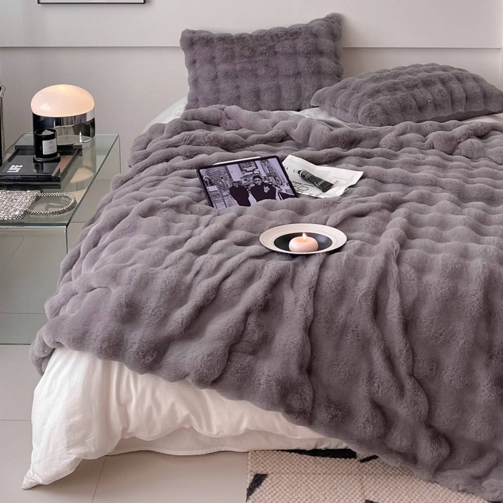 Vă prezentăm noua noastră colectie exclusivă: pătura premium pentru pat dublu realizată din blăniță artificială de iepure. Acest produs reprezintă combinația perfectă între eleganță și confort, garantând clipe de răsfăț în zilele reci de iarnă.