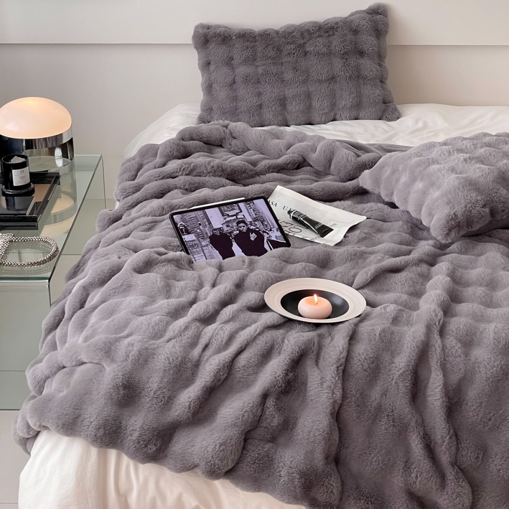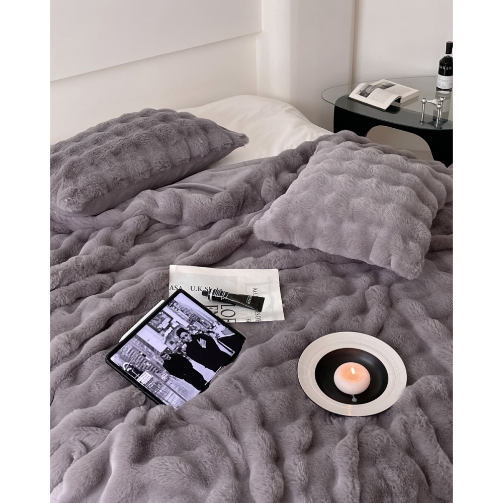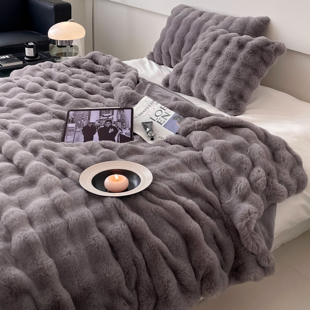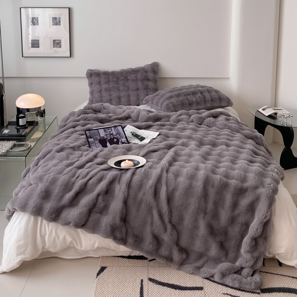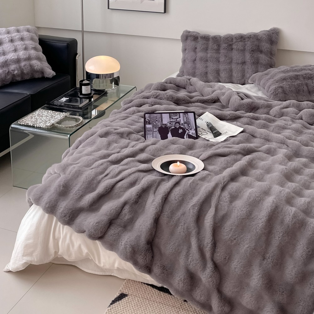 Vă prezentăm noua noastră colectie exclusivă: pătura premium pentru pat dublu realizată din blăniță artificială de iepure. Acest produs reprezintă combinația perfectă între eleganță și confort, garantând clipe de răsfăț în zilele reci de iarnă.