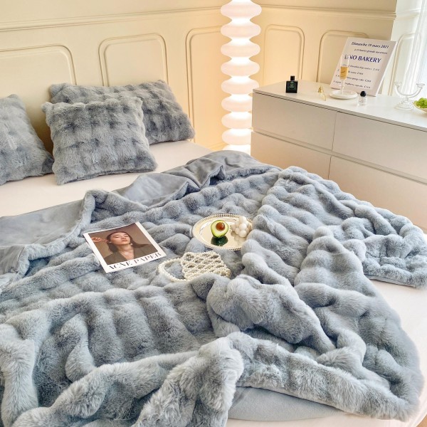 Patura CoCoLiNo ExtraPufoasa din Blanita artificiala de iepure, 200x230cm, Gri Albastrui, Casa Creativ Elegant Pucioasa, cod produs: SBYp5
