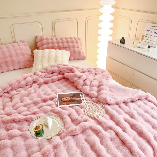Patura CoCoLiNo ExtraPufoasa din Blanita artificiala de iepure, 200x230cm, Roz, Casa Creativ Elegant Pucioasa, cod produs: SBYp3