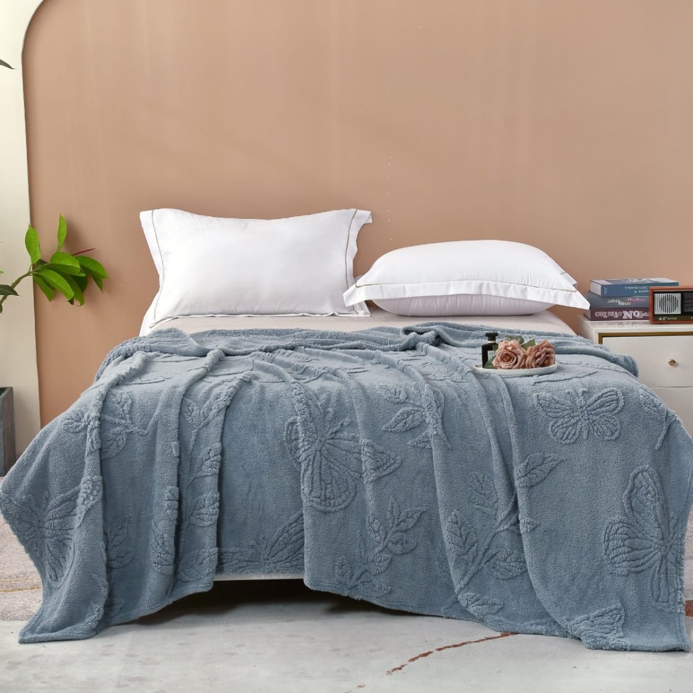 Patura CoCoLiNo, model grofat cu model in relief, 200x230cm, gri albastrui, fluturi, cod produs: PTP14
