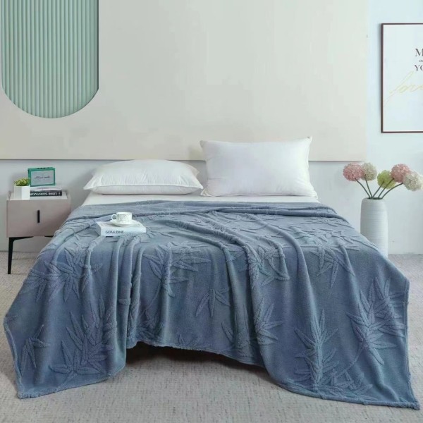 Patura CoCoLiNo, model grofat cu model in relief, 200x230cm, gri albastrui, frunze, cod produs: PTP3