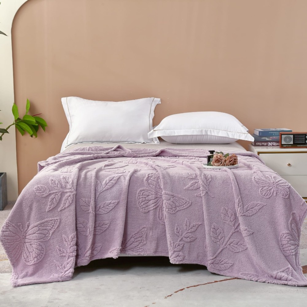 Patura CoCoLiNo, model grofat cu model in relief, 200x230cm, lila, fluturi, cod produs: PTP10