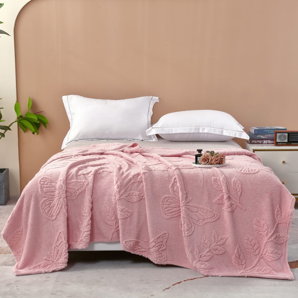Patura CoCoLiNo, model grofat cu model in relief, 200x230cm, roz, fluturi, cod produs: PTP15