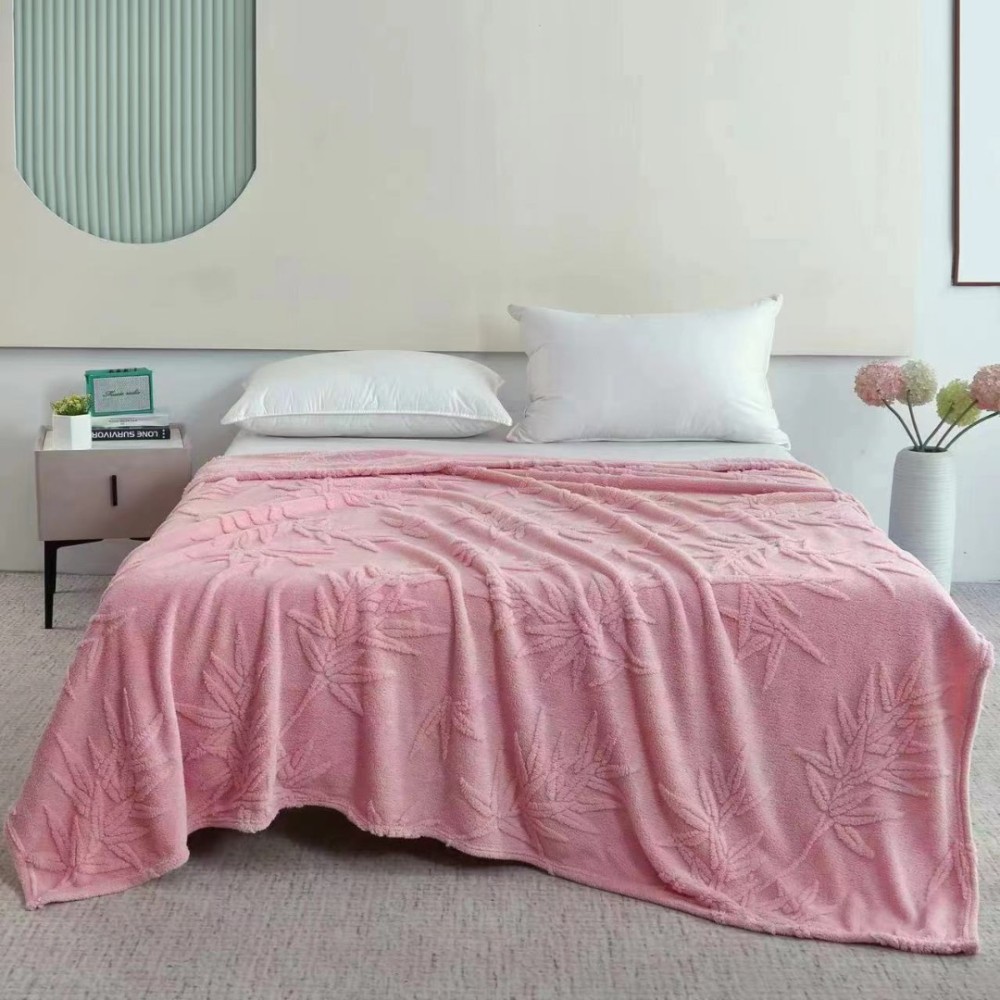 Patura CoCoLiNo, model grofat cu model in relief, 200x230cm, roz, frunze, cod produs: PTP5