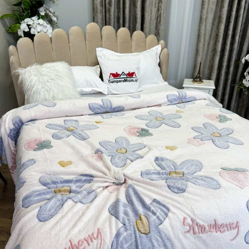 • Nu necesita calcare, materialul nu se sifoneaza la spalat: este suficient sa puneti patura la uscat cat mai intinsa, iar aceasta va ramane complet neteda, fara cute, nefiind nevoie de calcare