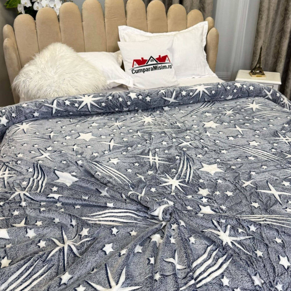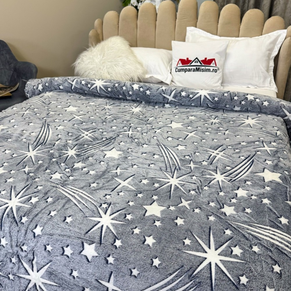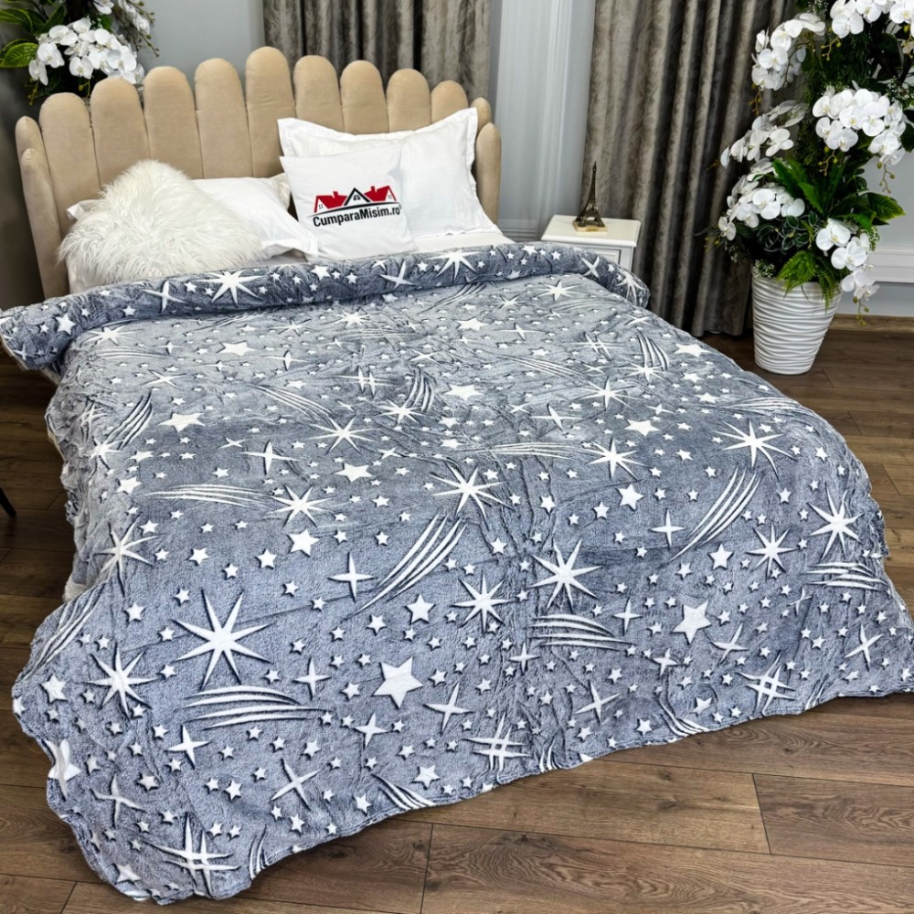 Patura CoCoLiNo Puffy, 200x220cm, Gri, Alb, ploaie de stele, cod produs: CSA-PT206