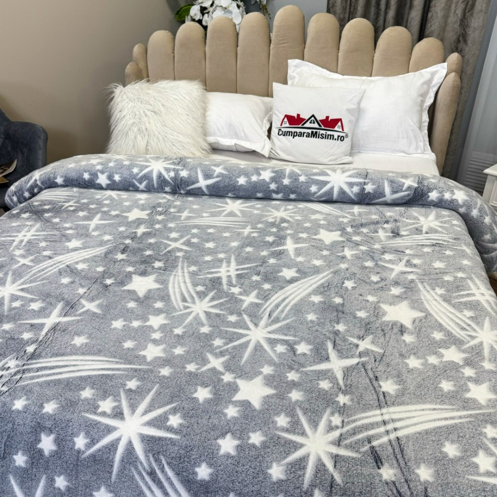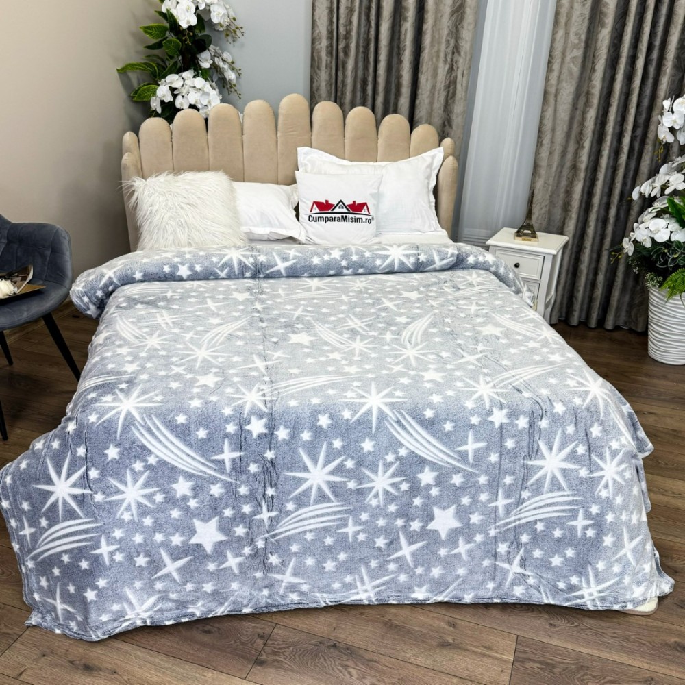 Patura CoCoLiNo Puffy, 200x220cm, Gri, Alb, stelute, cod produs: CSA-PT211