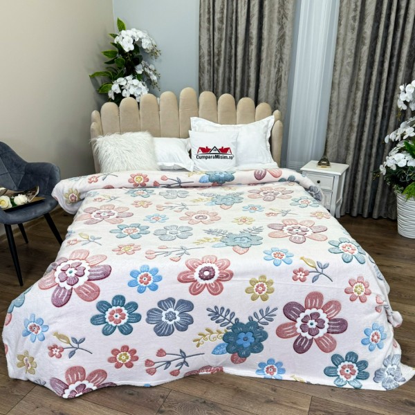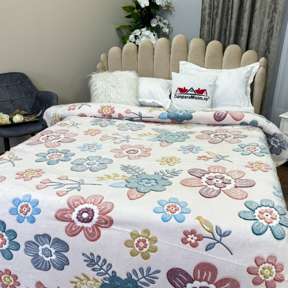 Patura CoCoLiNo Puffy, 200x220cm, Multicolor, flori, cod produs: CSA-PT215