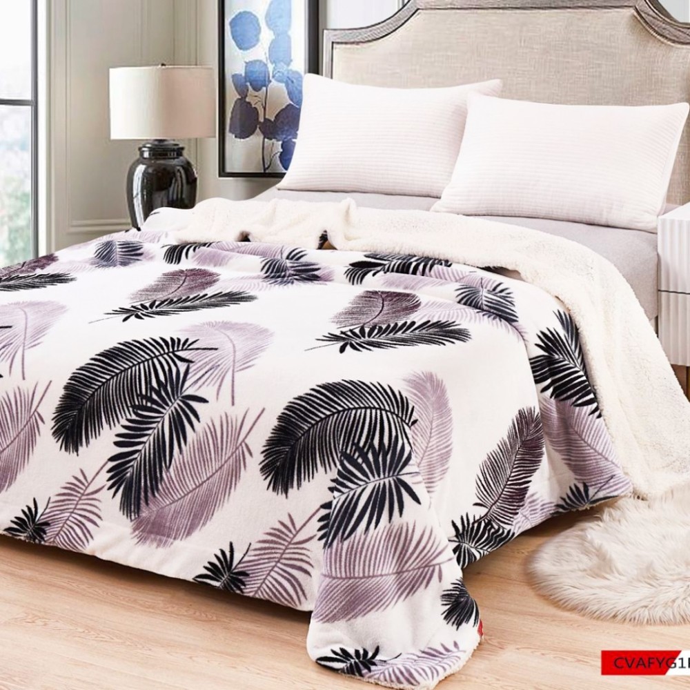 Pătură Luxoasă Cocolino din Microfibră Ultra-Moale, cu Blăniță Sherpa, 200x230 cm - Confort Maxim și Design Elegant pentru Nopți Perfecte, Alb, Gri, Frunze, JOJO Home, cod produs: SDP-PB02