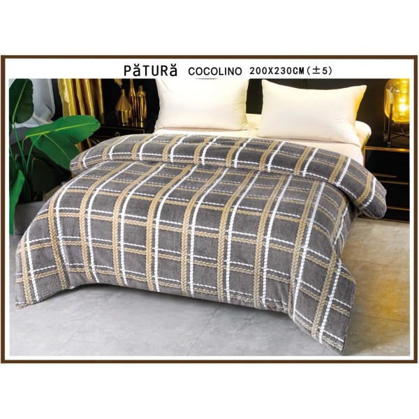 Patura pufoasa cocolino 200x230cm, 220gr, Gri-Bej, patrate, Alti producatori, cod produs: PCP28
