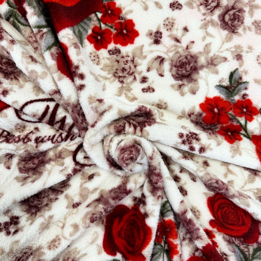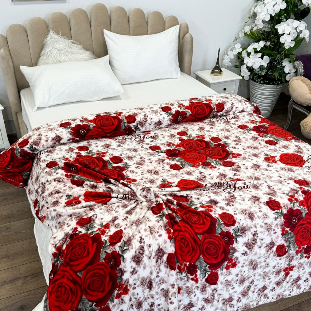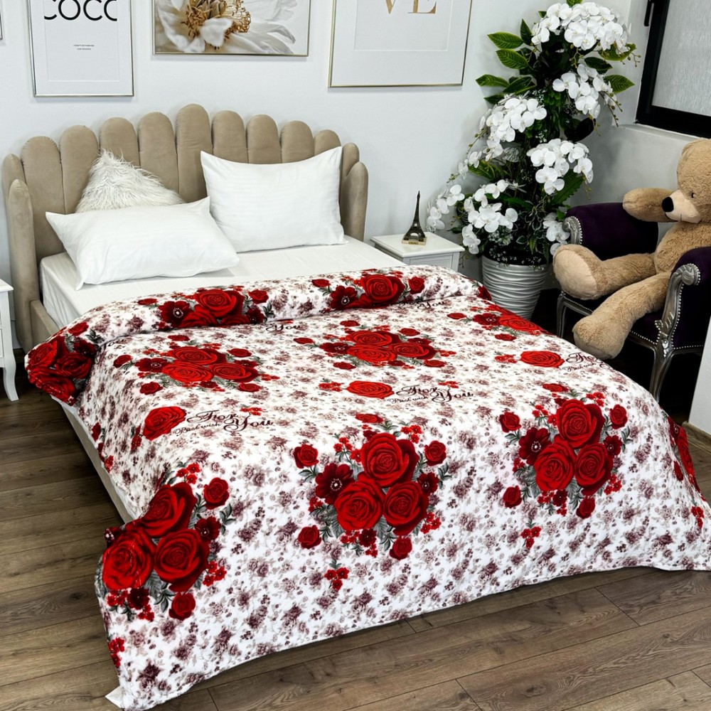 Patura pufoasa cocolino 200x230cm, 240g/mp, Alb, trandafiri rosii, Super Design Pucioasa, cod produs: YJP123