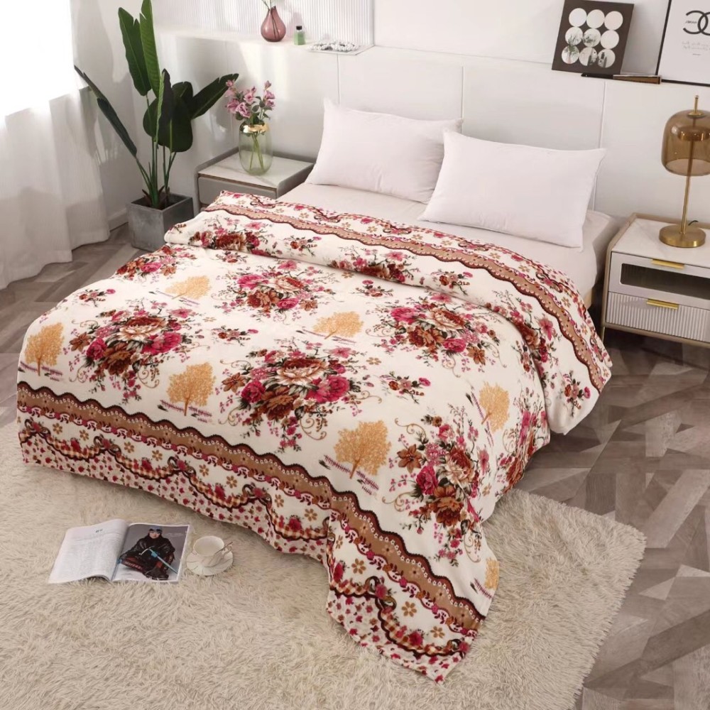Patura pufoasa cocolino 200x230cm, 240g/mp, Bej, flori, copaci, Super Design Pucioasa, cod produs: YJP203