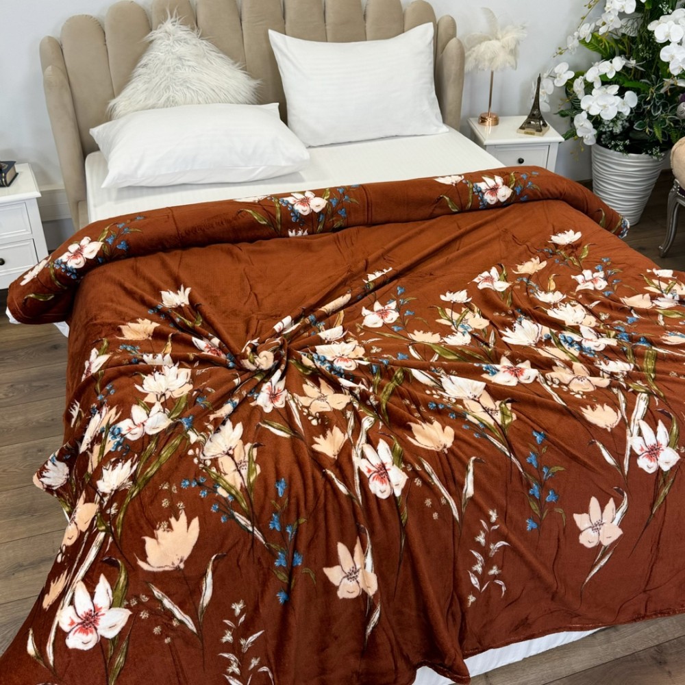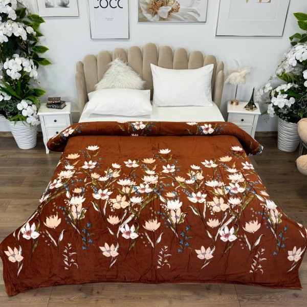 Patura pufoasa cocolino 200x230cm, 240g/mp, Maro, flori, Super Design Pucioasa, cod produs: YJP3