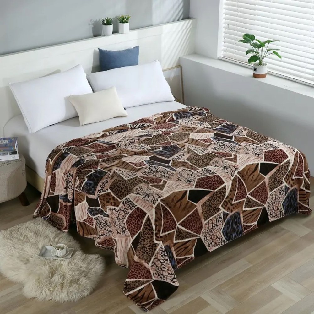 Patura pufoasa cocolino 200x230cm, 240g/mp, Maro, forme geometrice și animal print, Super Design Pucioasa, cod produs: YJP114