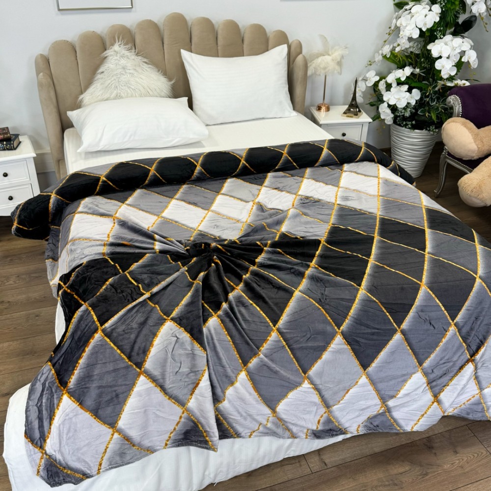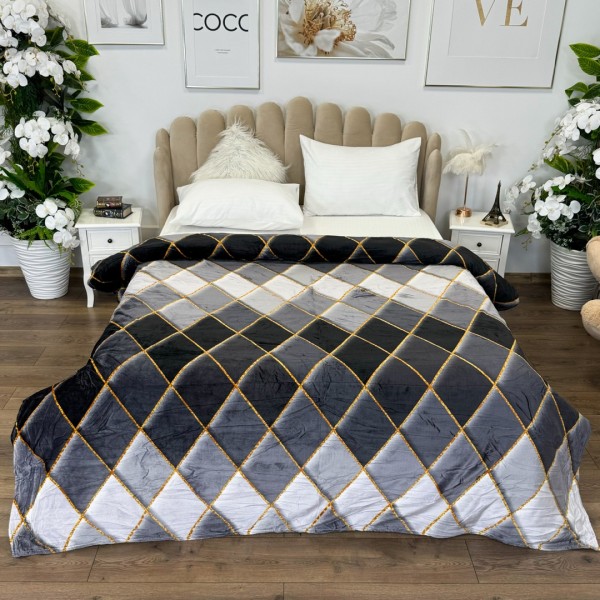 Patura pufoasa cocolino 200x230cm, 240g/mp, Negru, Gri, forme geometrice, Super Design Pucioasa, cod produs: YJP10