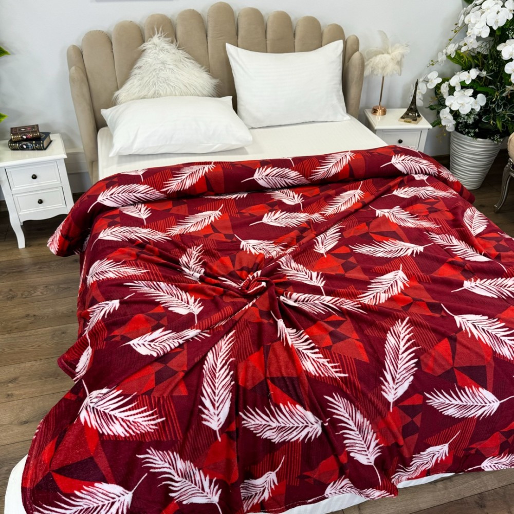 Patura pufoasa cocolino 200x230cm, 240g/mp, Rosu, frunze, Super Design Pucioasa, cod produs: YJP6