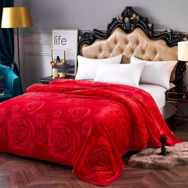 Patura pufoasa cocolino 200x230cm, 240g/mp, Rosu, trandafiri, Super Design Pucioasa, cod produs: YJP116