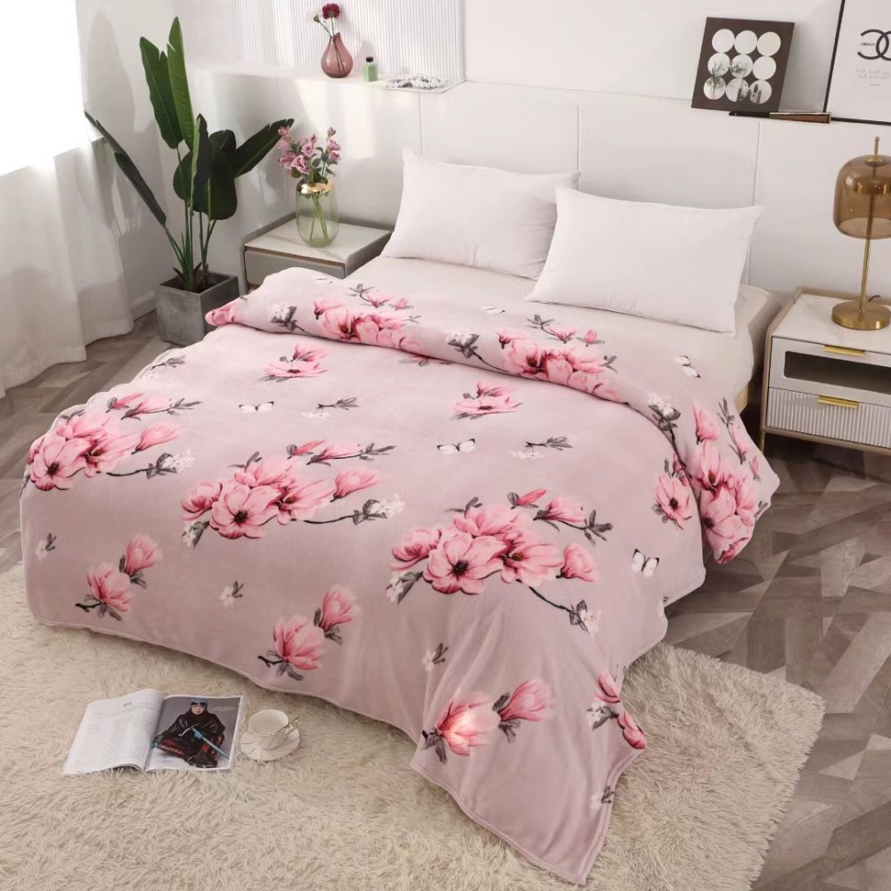 Patura pufoasa cocolino 200x230cm, 240g/mp, Roz, flori, fluturi, Super Design Pucioasa, cod produs: YJP204