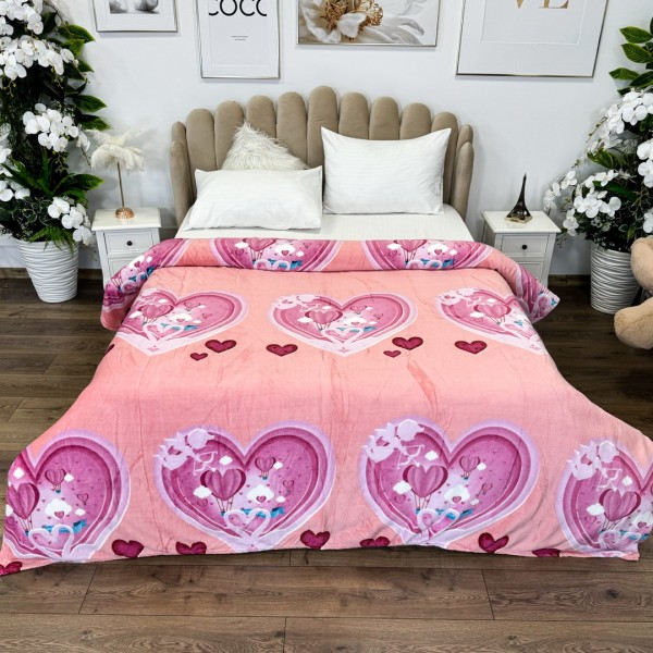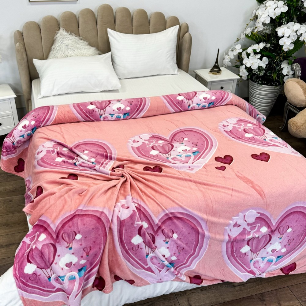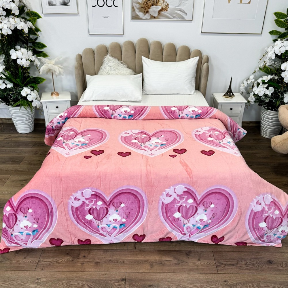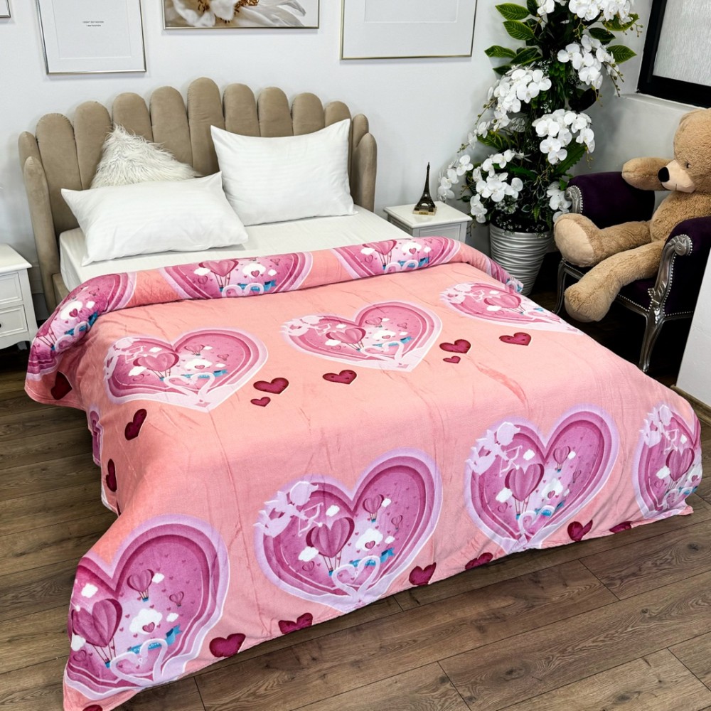 Patura pufoasa cocolino 200x230cm, 240g/mp, Roz, inimioare, Super Design Pucioasa, cod produs: YJP140