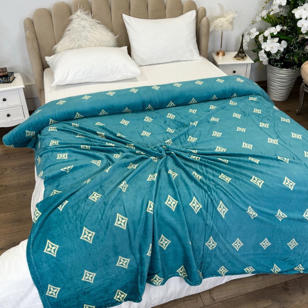 Patura pufoasa cocolino 200x230cm, 240g/mp, Turcoaz deschis, stelute, Super Design Pucioasa, cod produs: YJP11