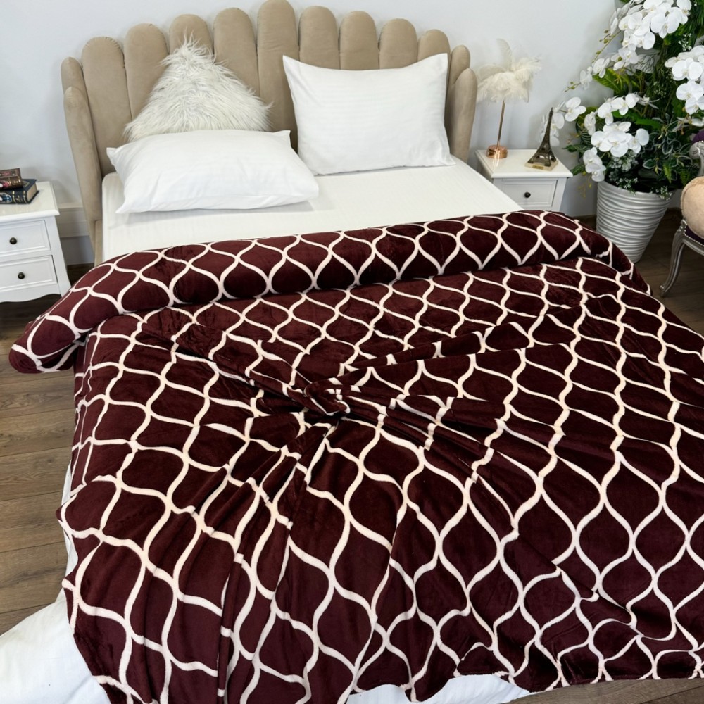 Patura pufoasa cocolino 200x230cm, 240g/mp, Visiniu, Alb, model elegant, Super Design Pucioasa, cod produs: YJP14