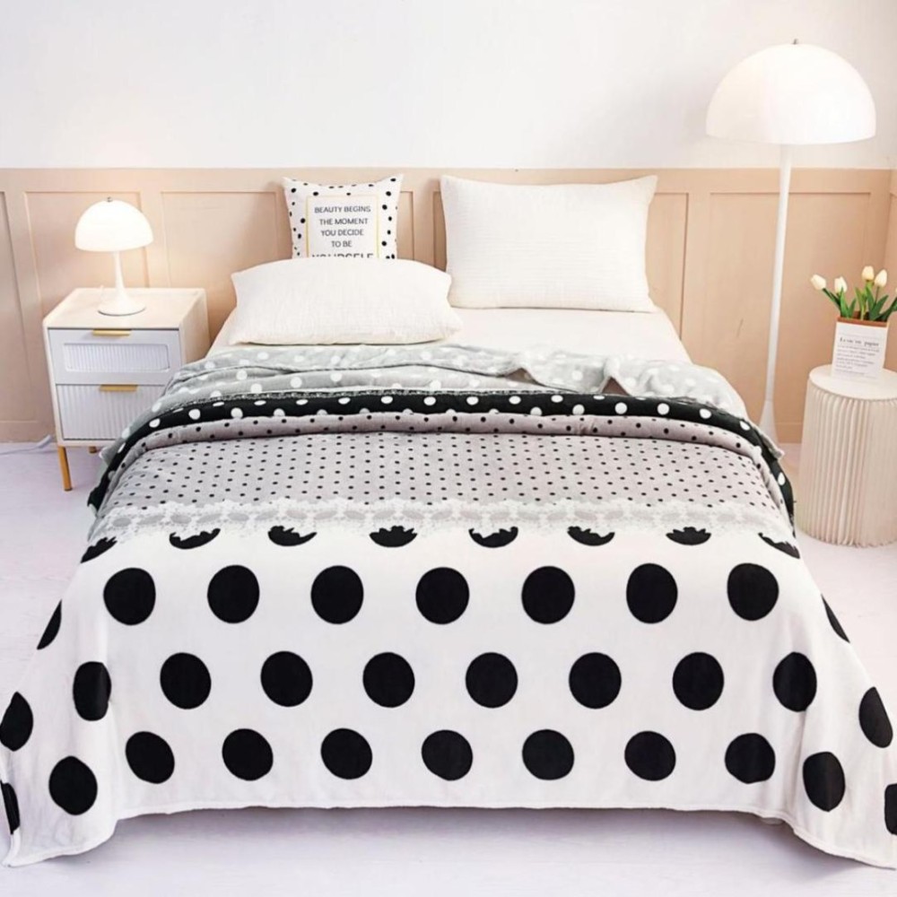 Patura pufoasa cocolino 200x230cm, 240gr/m, alb, negru, buline, Super Design Pucioasa, cod produs: SDP-F1B-204