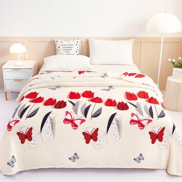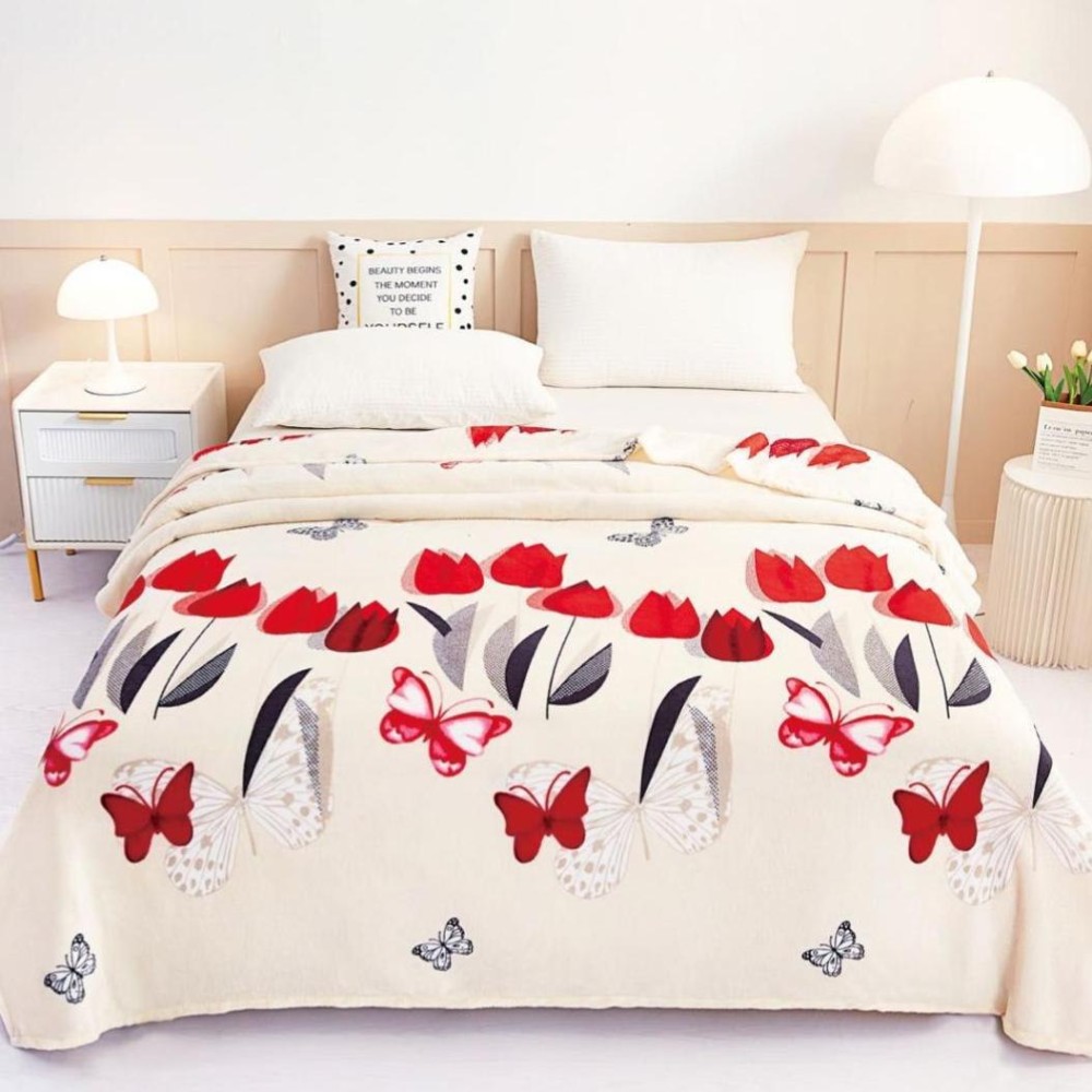 Patura pufoasa cocolino 200x230cm, 240gr/m, alb unt, flori, Super Design Pucioasa, cod produs: SDP-F1B-208