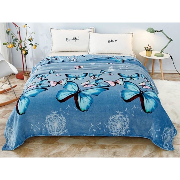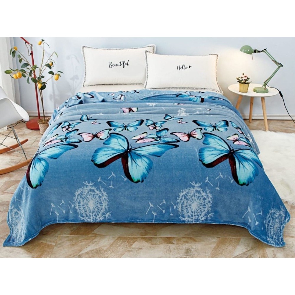 Patura pufoasa cocolino 200x230cm, 240gr/m, albastru, fluturi, Super Design Pucioasa, cod produs: SDP-F1B-28