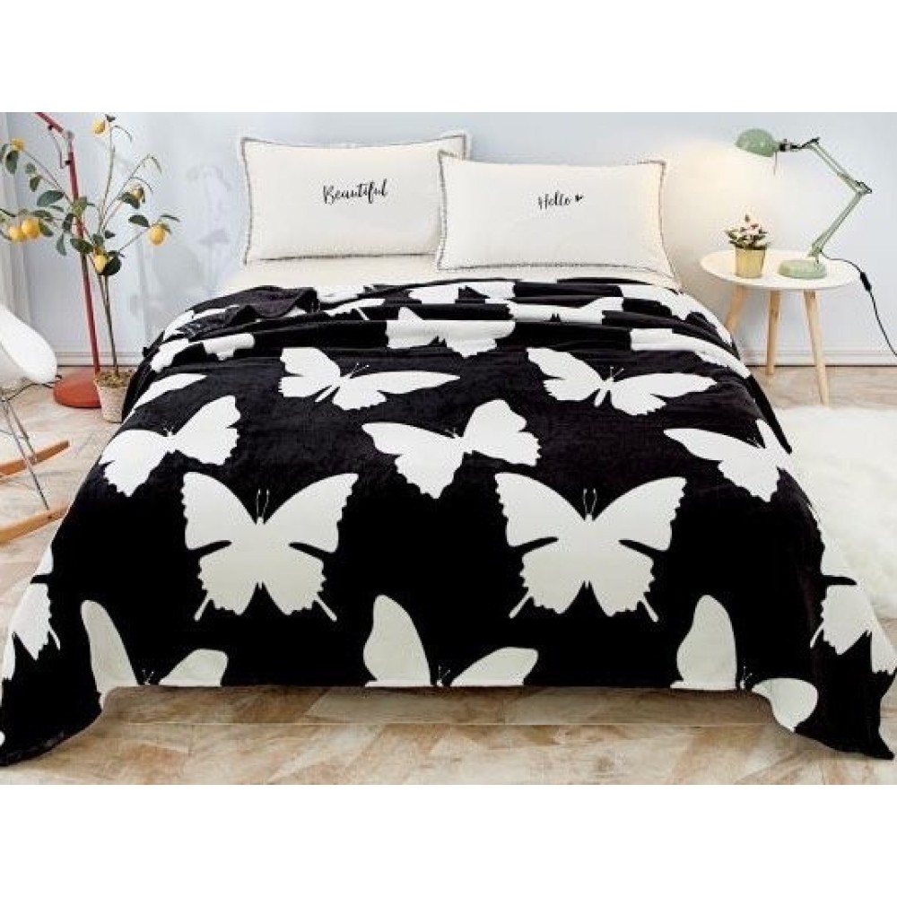 Patura pufoasa cocolino 200x230cm, 240gr/m, negru, fluturi, Super Design Pucioasa, cod produs: SDP-F1B-42