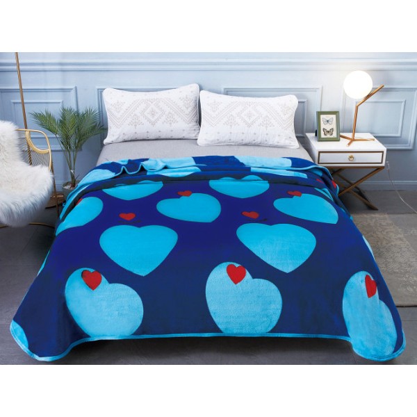 Patura pufoasa cocolino 200x230cm, 300gr/mp, Albastru-Rosu, inimioare, Super Design Pucioasa, cod produs: CVA66