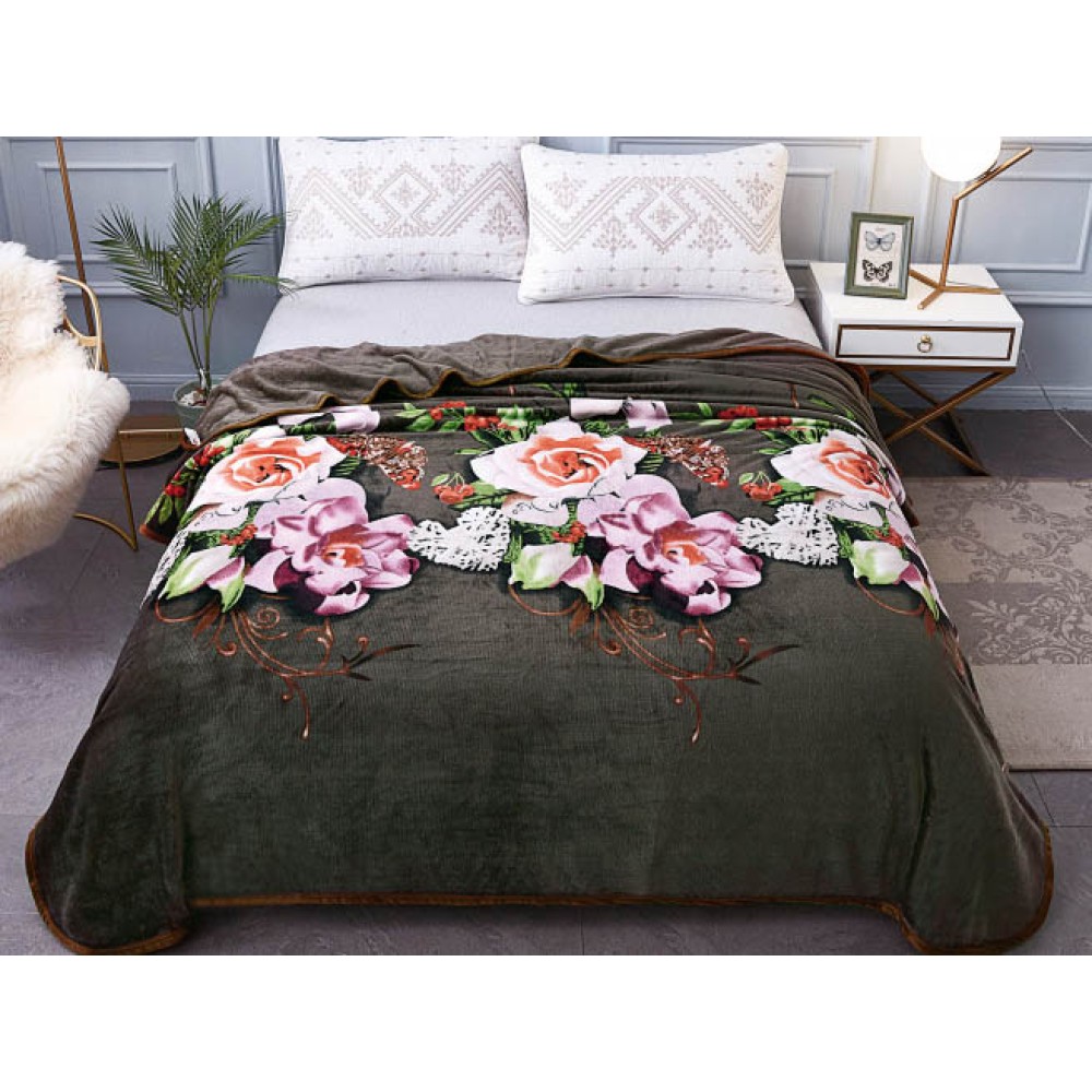 Patura pufoasa cocolino 200x230cm, 300gr/mp, Maro-Multicolor, Flori, Super Design Pucioasa, cod produs: CVA49