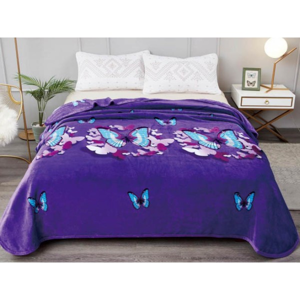 Patura pufoasa cocolino 200x230cm, 300gr/mp, Mov-Multicolor, Fluturi, Super Design Pucioasa, cod produs: CVA51