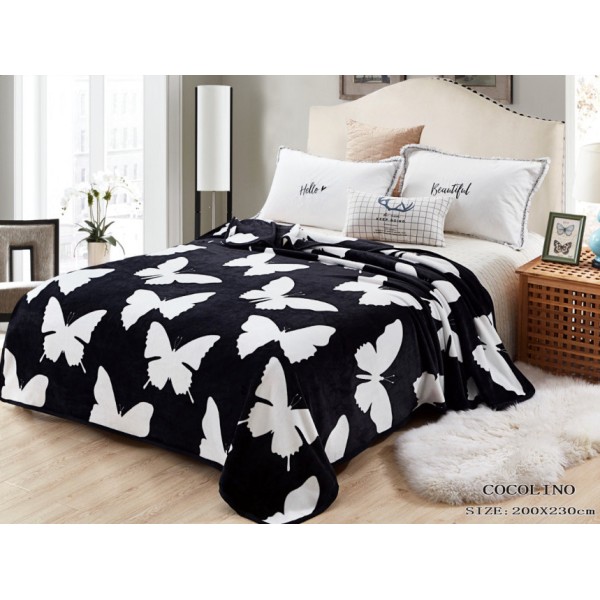 Patura pufoasa cocolino 200x230cm, 300gr/mp, Negru-Alb, Fluturi, Super Design Pucioasa, cod produs: CVA1