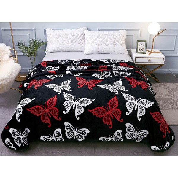 Patura pufoasa cocolino 200x230cm, 300gr/mp, Negru-Multicolor, Fluturi, Super Design Pucioasa, cod produs: CVA54
