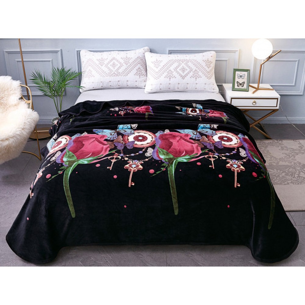 Patura pufoasa cocolino 200x230cm, 300gr/mp, Negru-Roz, Fluturi, Trandafiri, Super Design Pucioasa, cod produs: CVA59