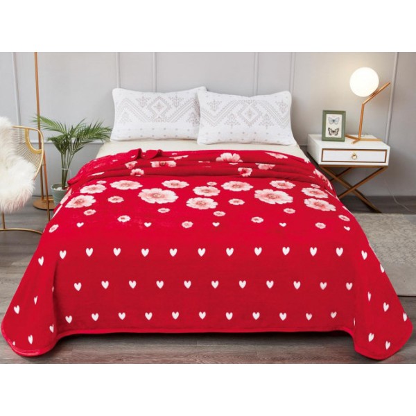 Patura pufoasa cocolino 200x230cm, 300gr/mp, Rosu-Alb, inimioare, flori, Super Design Pucioasa, cod produs: CVA68