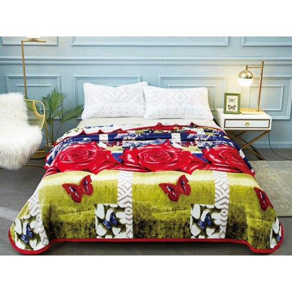 Patura pufoasa cocolino 200x230cm, 300gr/mp, Rosu-Verde, Fluturi, Trandafiri, Super Design Pucioasa, cod produs: CVA58
