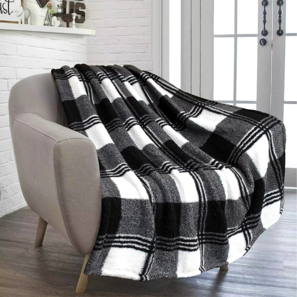 Patura pufoasa cocolino, 200x230cm, 350gr, carouri, Alb-Negru, Super Design Pucioasa, cod produs: SKP303